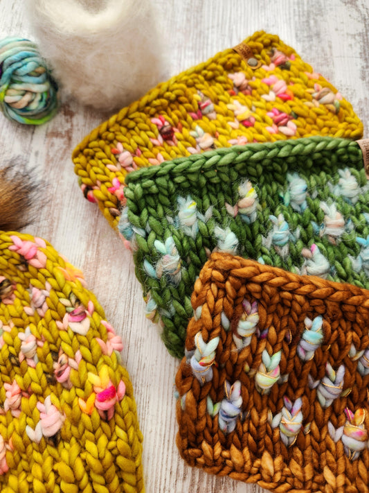 Set of 3 Handmade Faux Fur Pom Poms; Snow Wolf, Mocha, and Spice