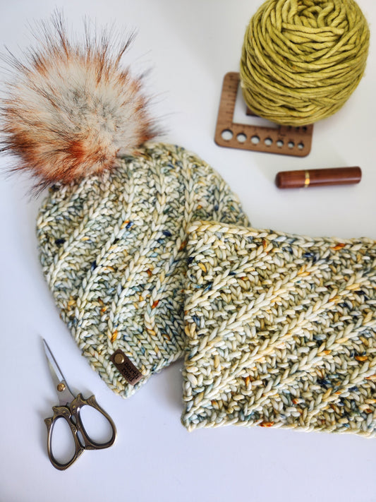 Merino Wool Pom Hat and Cowl Set
