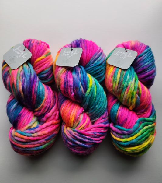 Honey and Clover | Hand Dyed Merino Wool Super Bulky | Rainbow Brite