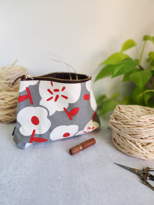 Knitting Project Bag, Large Zipper Pouch, Flores