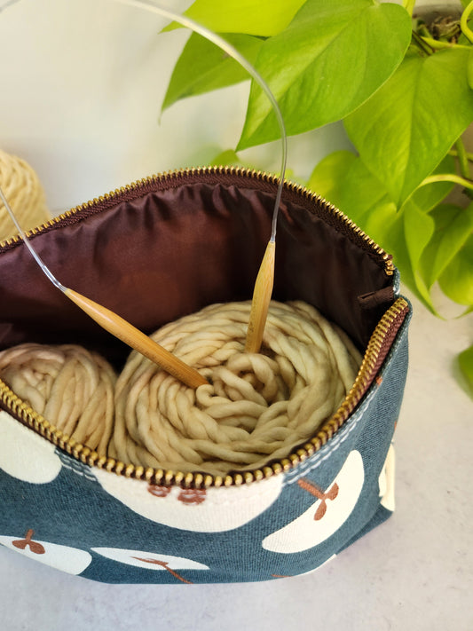 Knitting Project Bag, Large Zipper Pouch, Enid