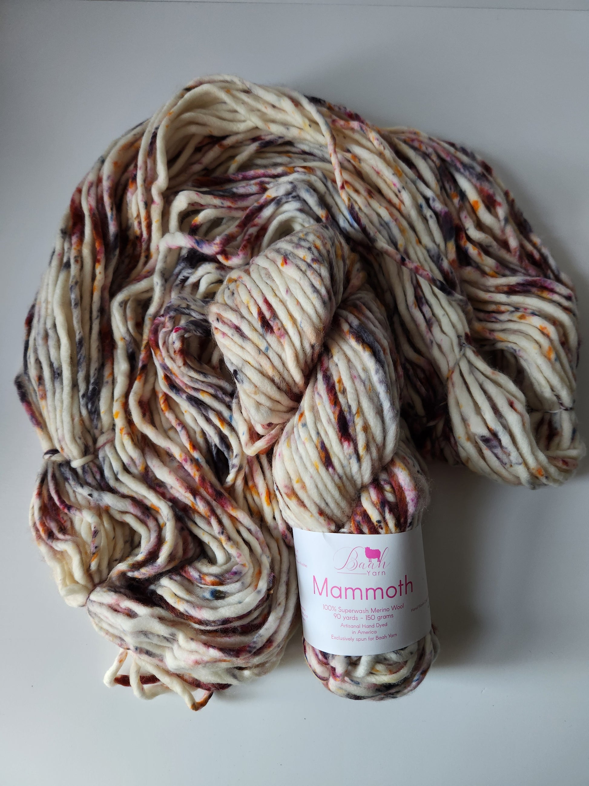 Baah Mammoth 100% superwash single ply merino wool. Each skein is 90 yards of hand-dyed squishy beauty, perfect for plump, quick knit or crochet projects.