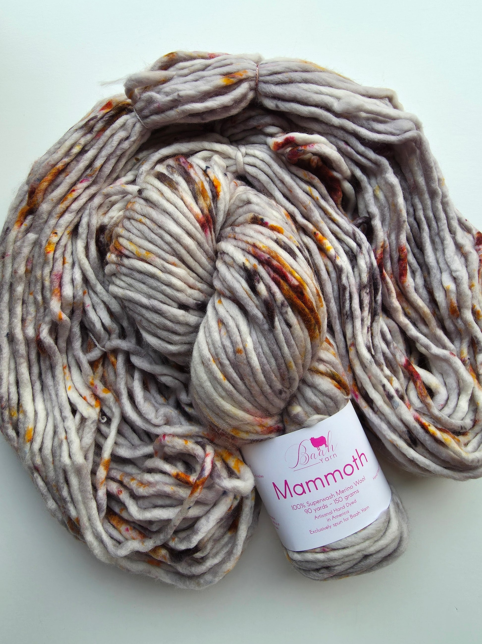 Baah Mammoth 100% superwash single ply merino wool. Each skein is 90 yards of hand-dyed squishy beauty, perfect for plump, quick knit or crochet projects.