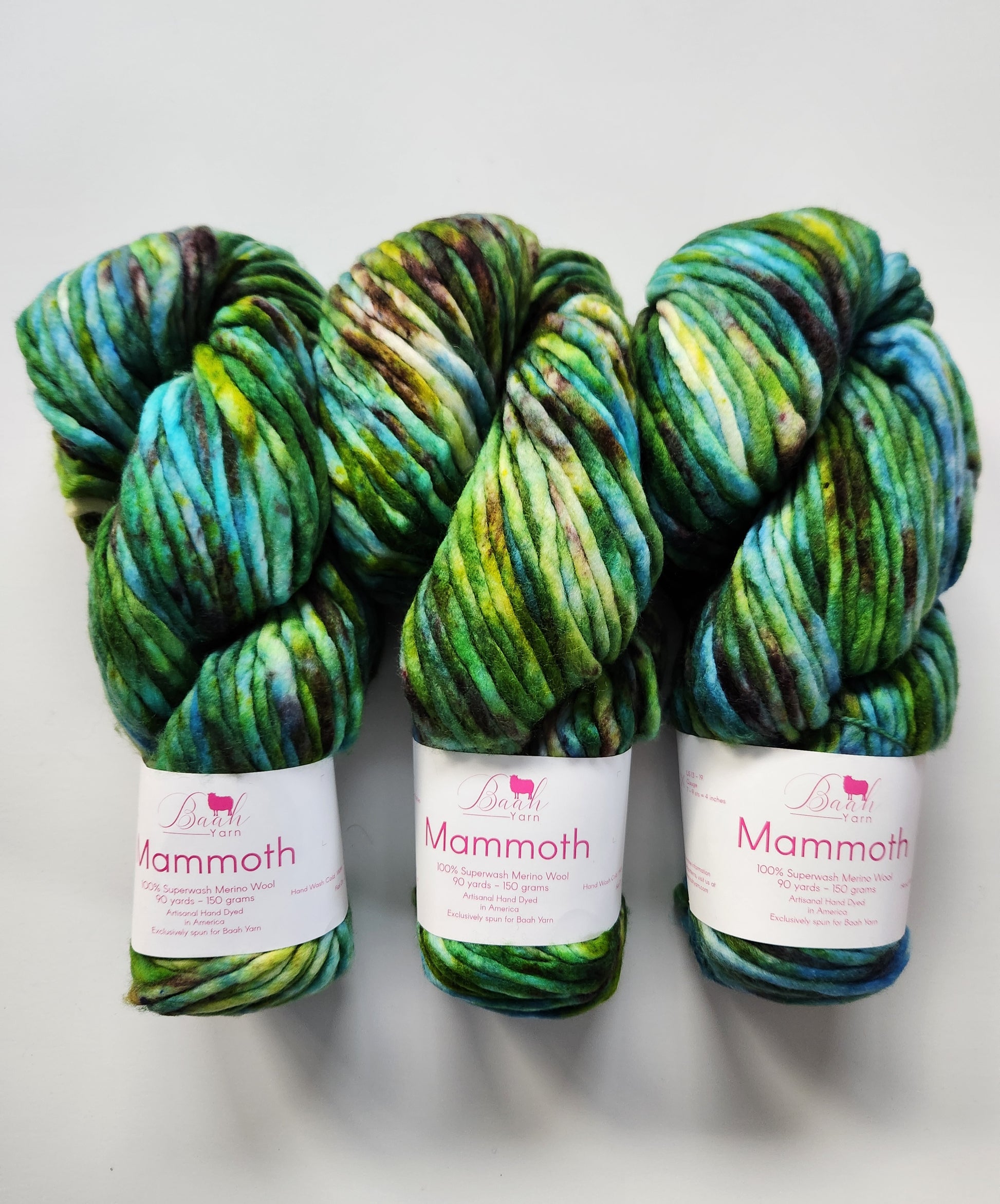 Baah Mammoth 100% superwash single ply merino wool. Each skein is 90 yards of hand-dyed squishy beauty, perfect for plump, quick knit or crochet projects.