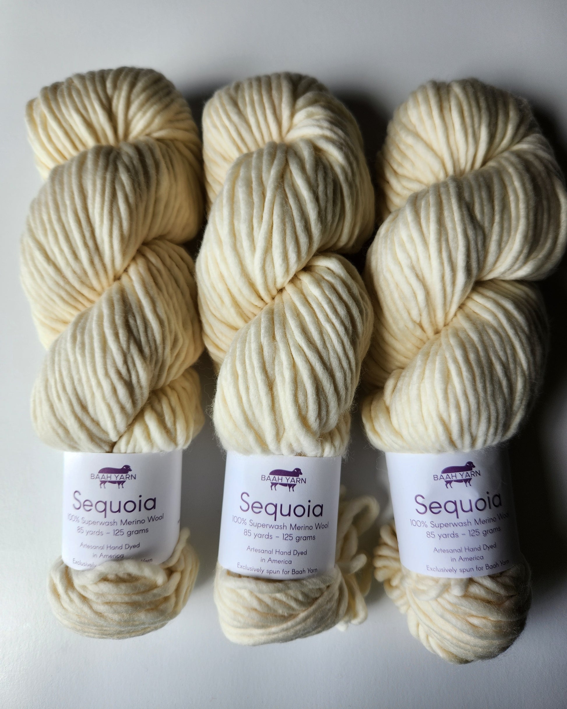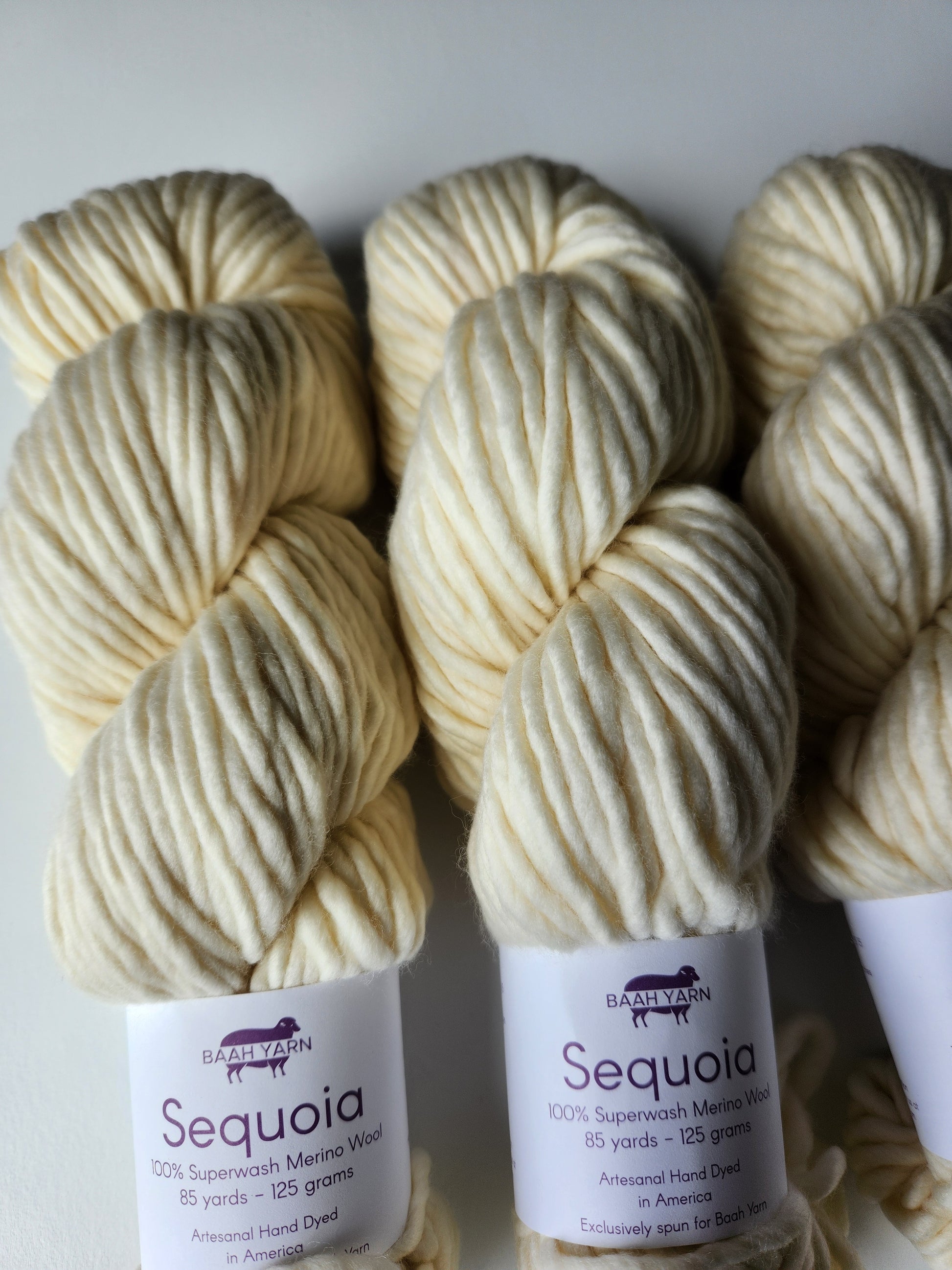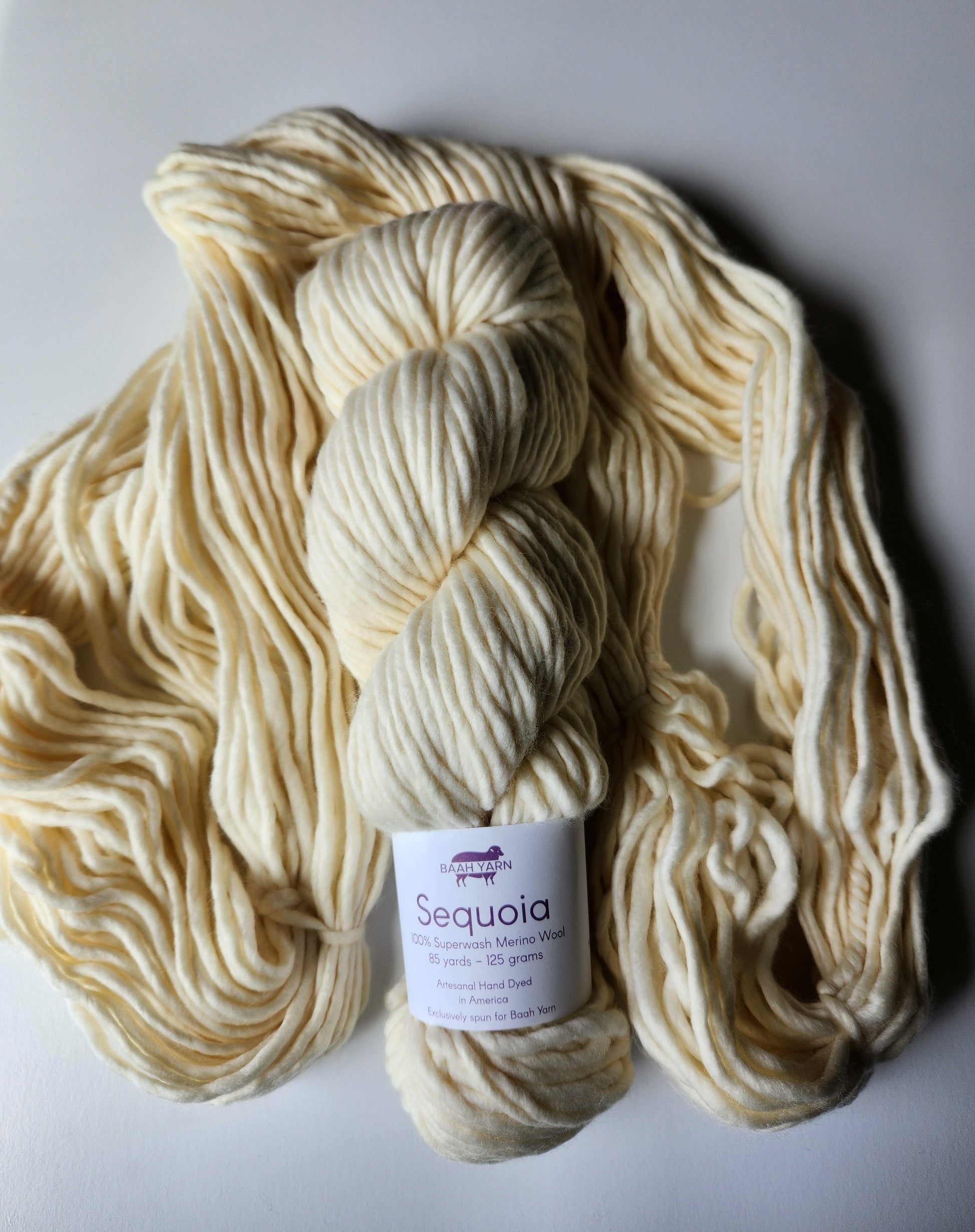 Baah Sequoia 100% superwash single ply merino wool. Each skein is 85 yards of hand-dyed squishy beauty, perfect for plump, quick knit or crochet projects.