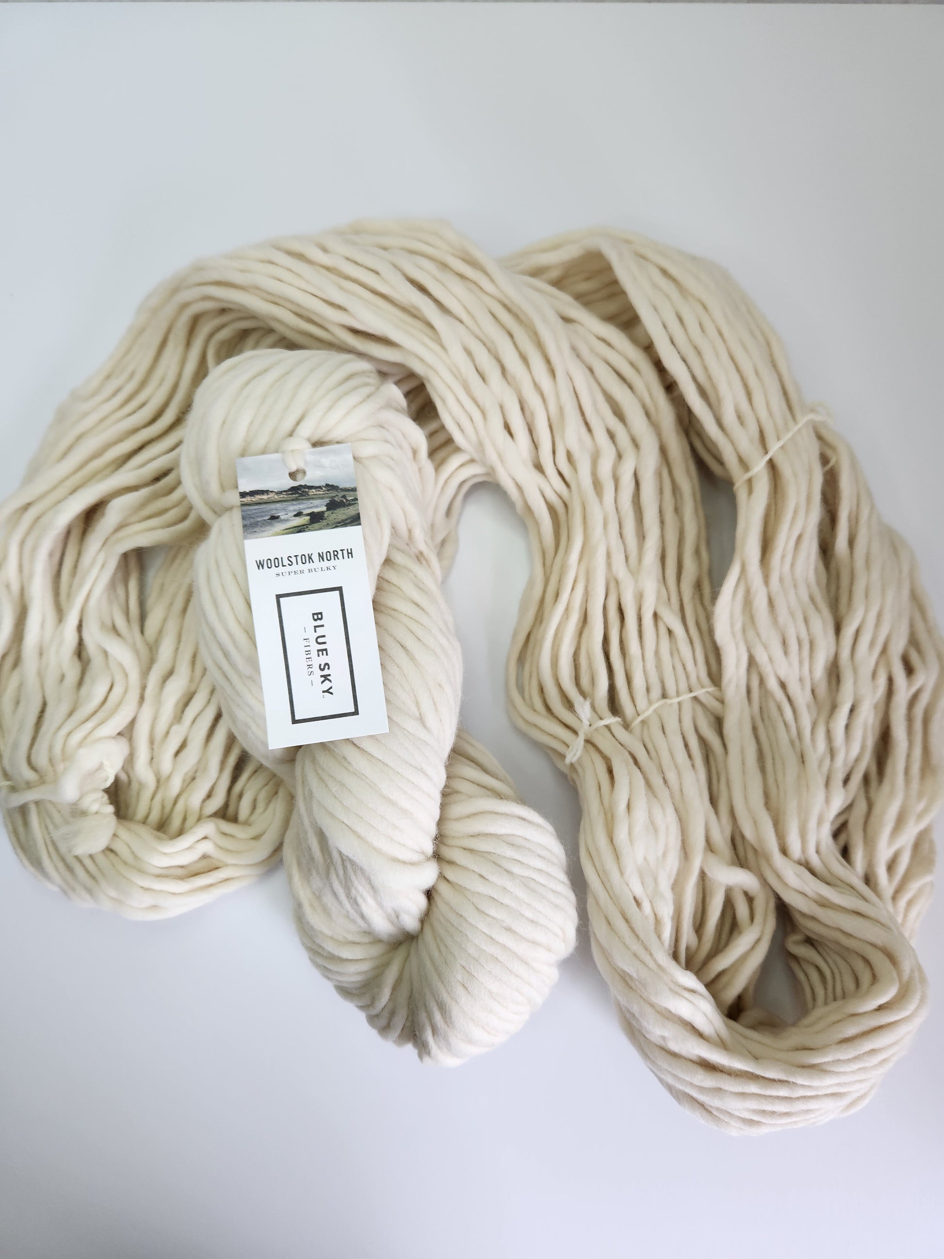 Blue Sky Fiber's Woolstok North in a single- ply super bulky weight yarn that comes in 12 rich colors. Each skein is 107 yards of wooly beauty, perfect for beautiful, quick knit or crochet projects.
