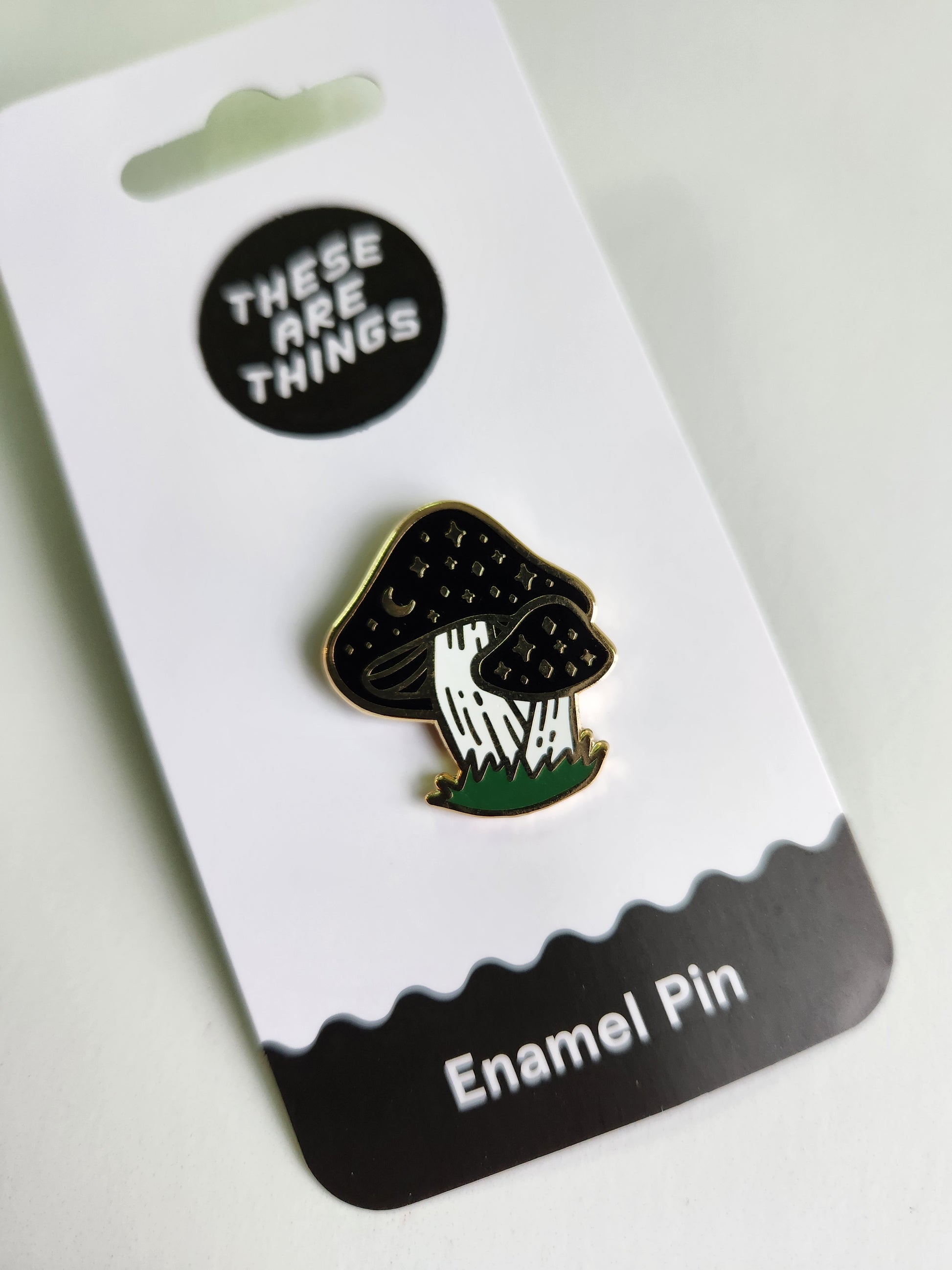 Art of Jen and Omar from These Are Things in Columbus, Ohio. Pins made in China.