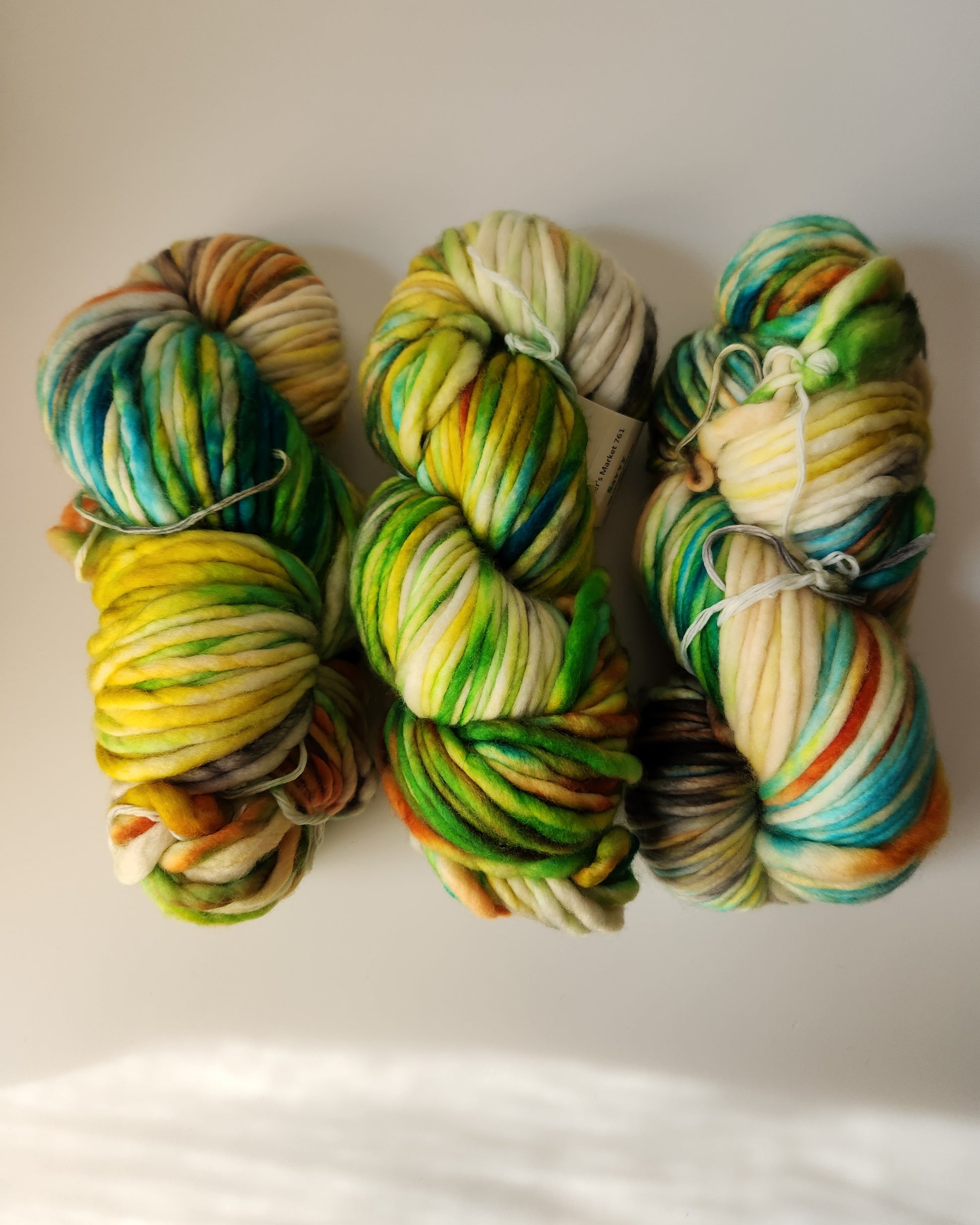 This yarn can be used with a variety of the patterns on my website, but looks especially great with the Gales of November, Birch Leaves or North Road patterns. If you're a beginner, try a Simple Winter Hat or Cowl.