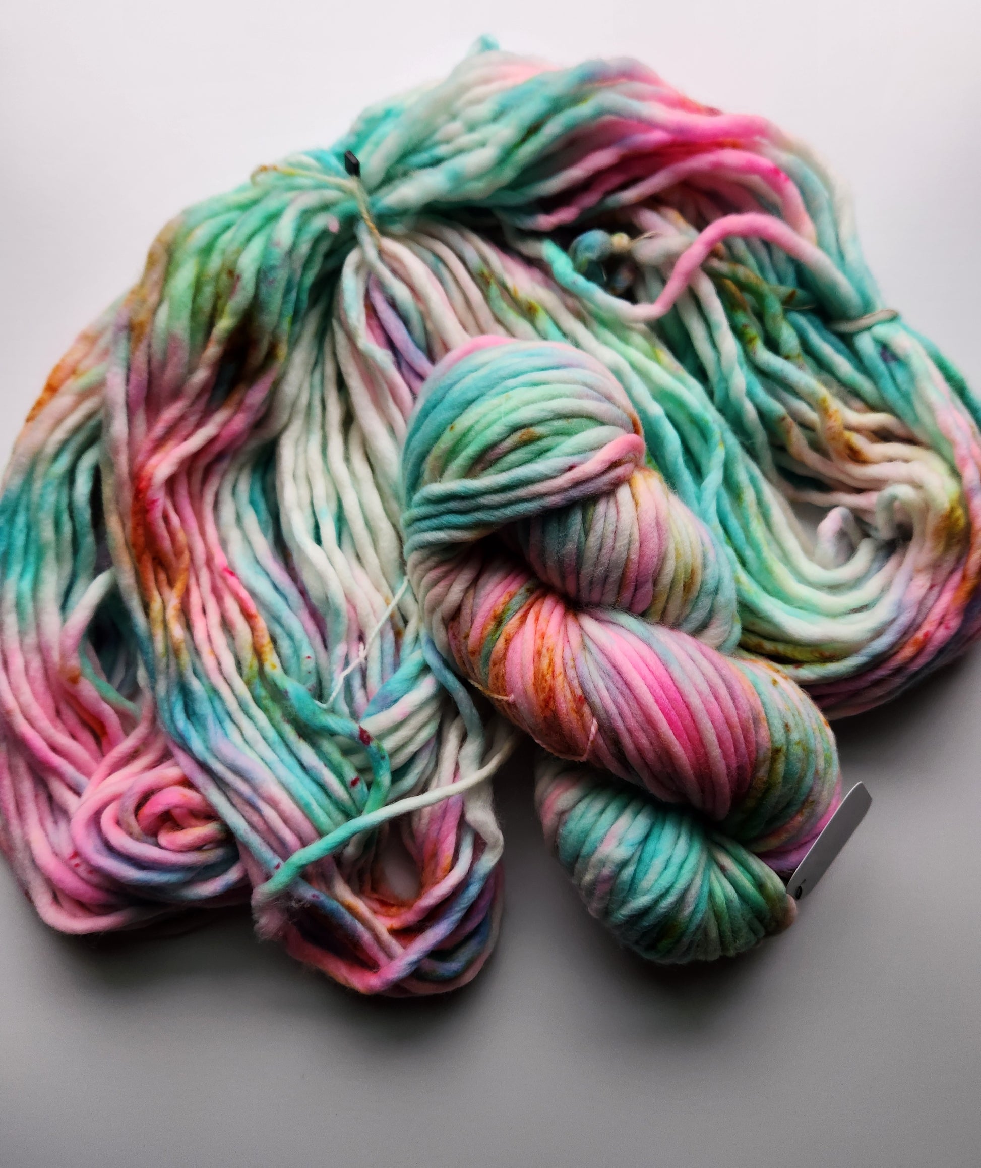 Each skein is hand dyed, and therefore one of a kind. Please expect some color variation.