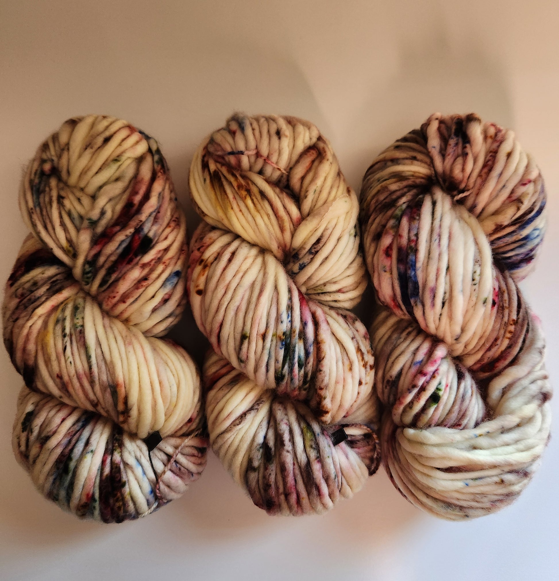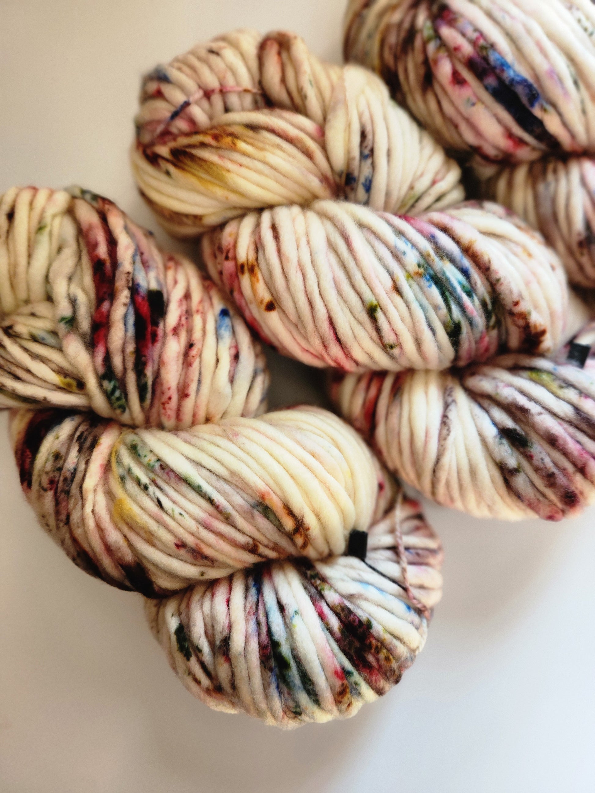 I am so excited to have some of Honey and Clover's hand dyed yarn on my website. Trish hand dyes each skein in dozens of unique colorways. Single Ply Super Bulky 100% Merino Wool Superwash. Each skein is 98 yards of hand-dyed squishy beauty, perfect for plump, quick knit or crochet projects.