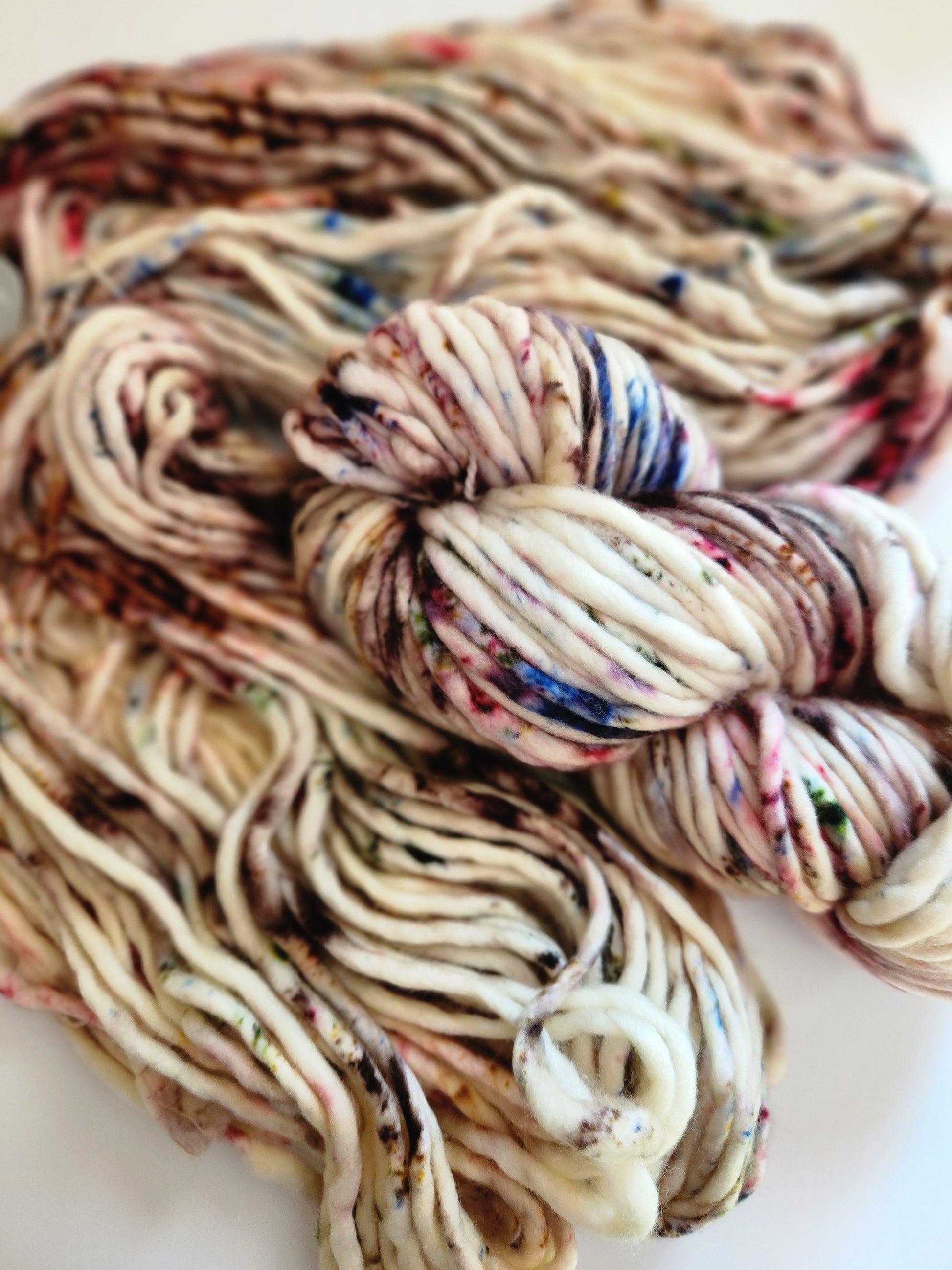 Each skein is hand dyed, and therefore one of a kind. Please expect some color variation.