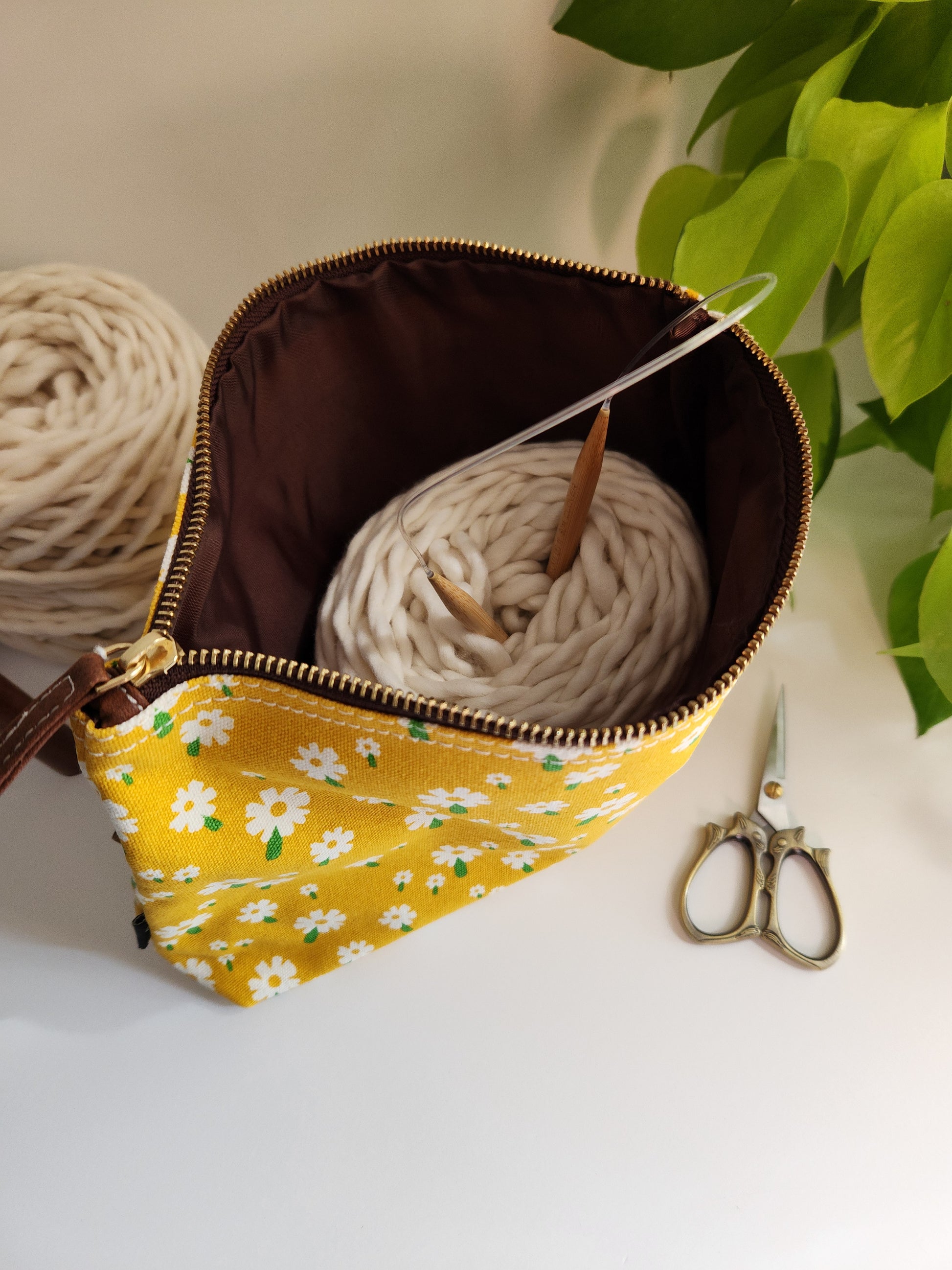 Not just for knitting, this cute zipper pouch can be used for a variety of organizing needs. Use it as a make-up bag, or for art and desktop supplies.... lots of possibilities here! It has an interior waterproof lining for easy cleaning.