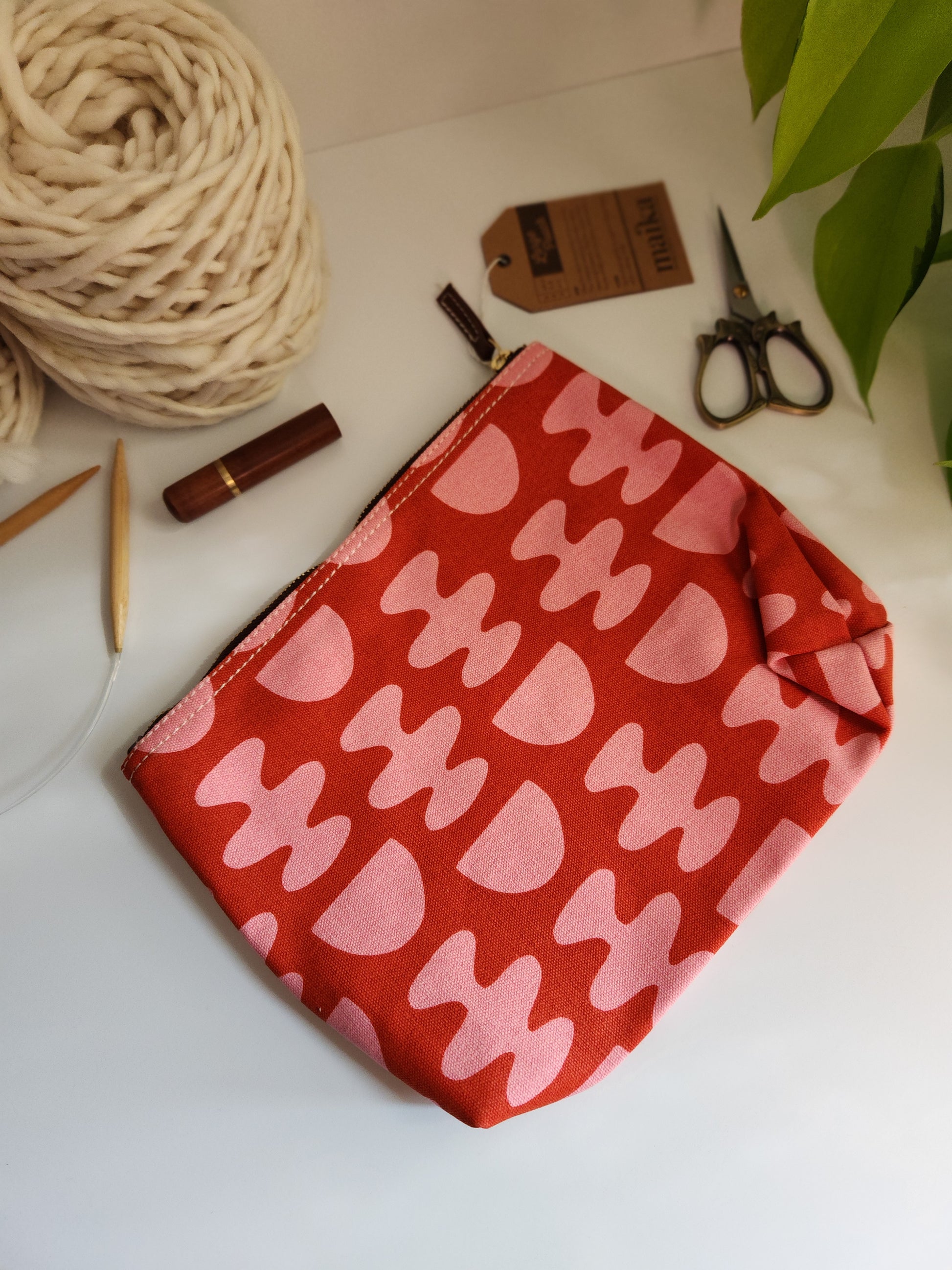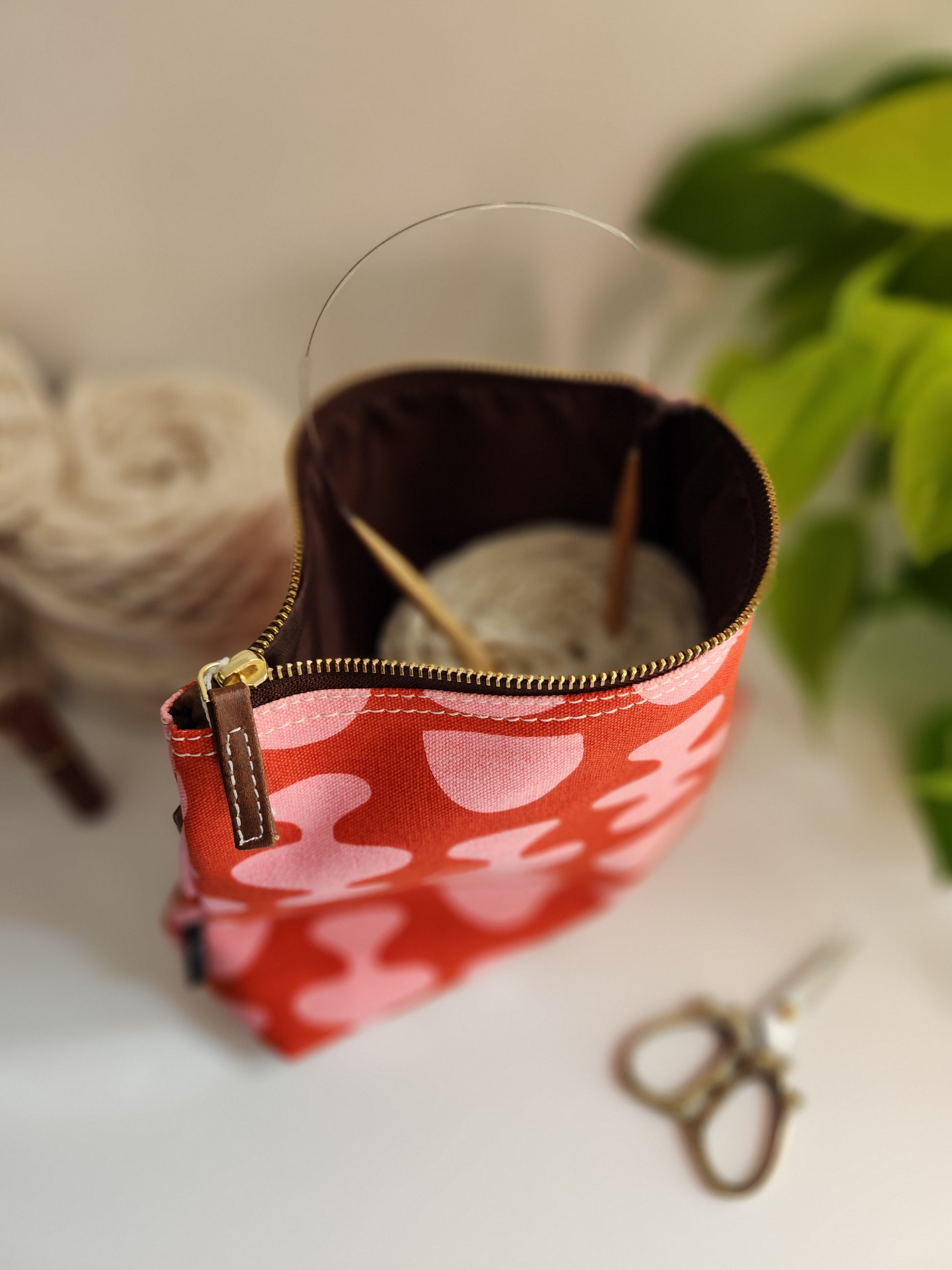 Not just for knitting, this cute zipper pouch can be used for a variety of organizing needs. Use it as a make-up bag, or for art and desktop supplies.... lots of possibilities here! It has an interior waterproof lining for easy cleaning.