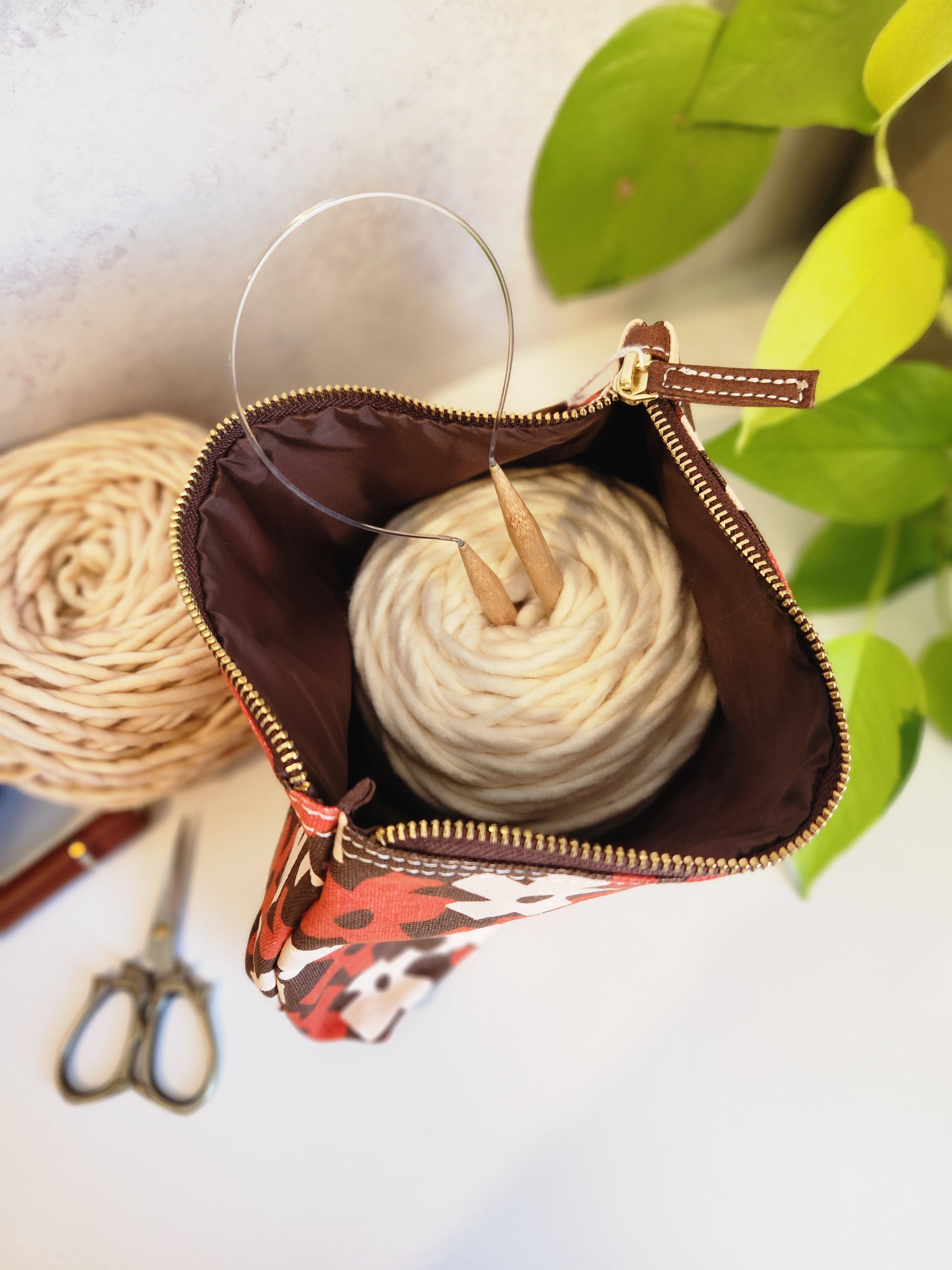 Knitting Project Bag, Large Zipper Pouch, Solvang Terra