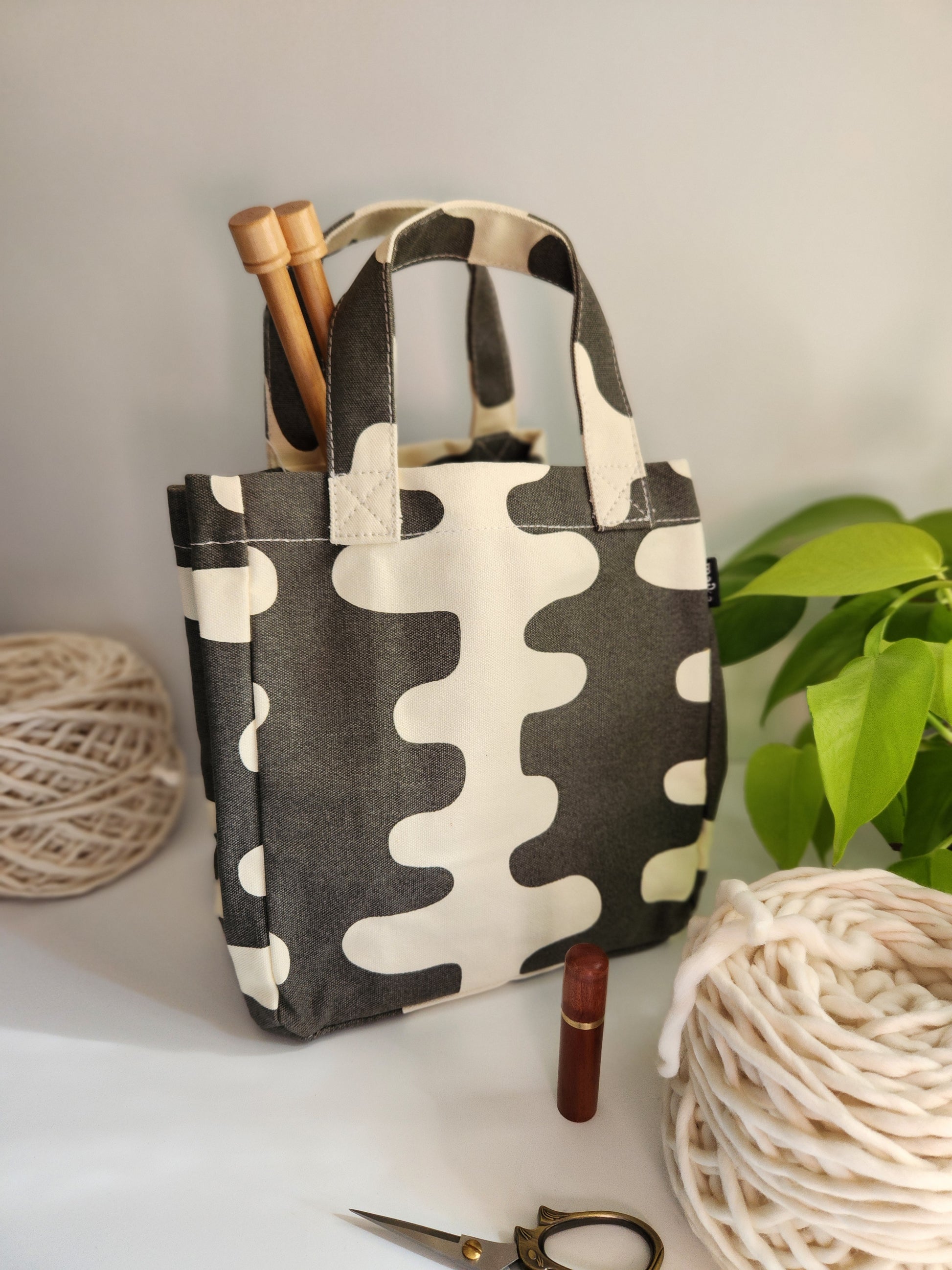Knitting Project Bag, Lunch Tote, Echo Charcoal