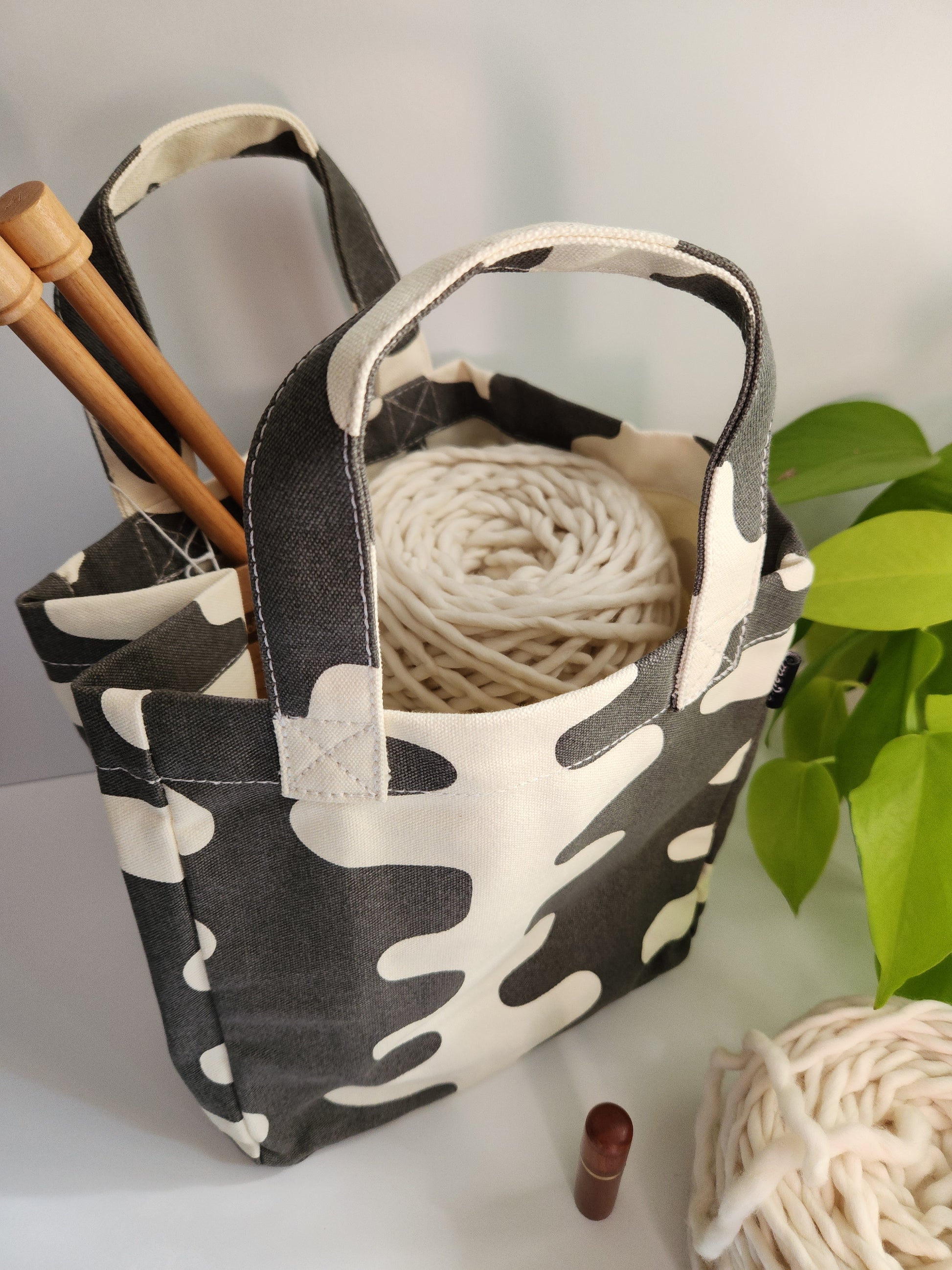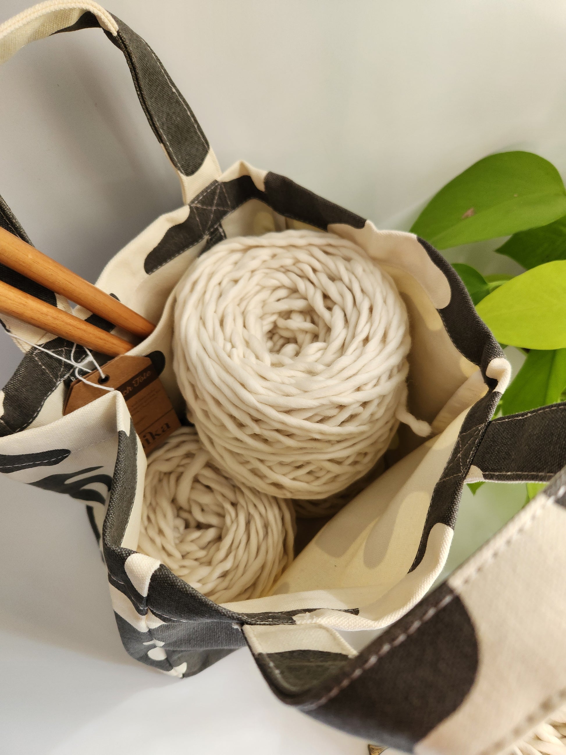 For yarny lovers, this tote holds up to 4 balls of super bulky yarn, or at least 10 balls of worsted weight yarn with plenty of room for your needles and pattern, too.