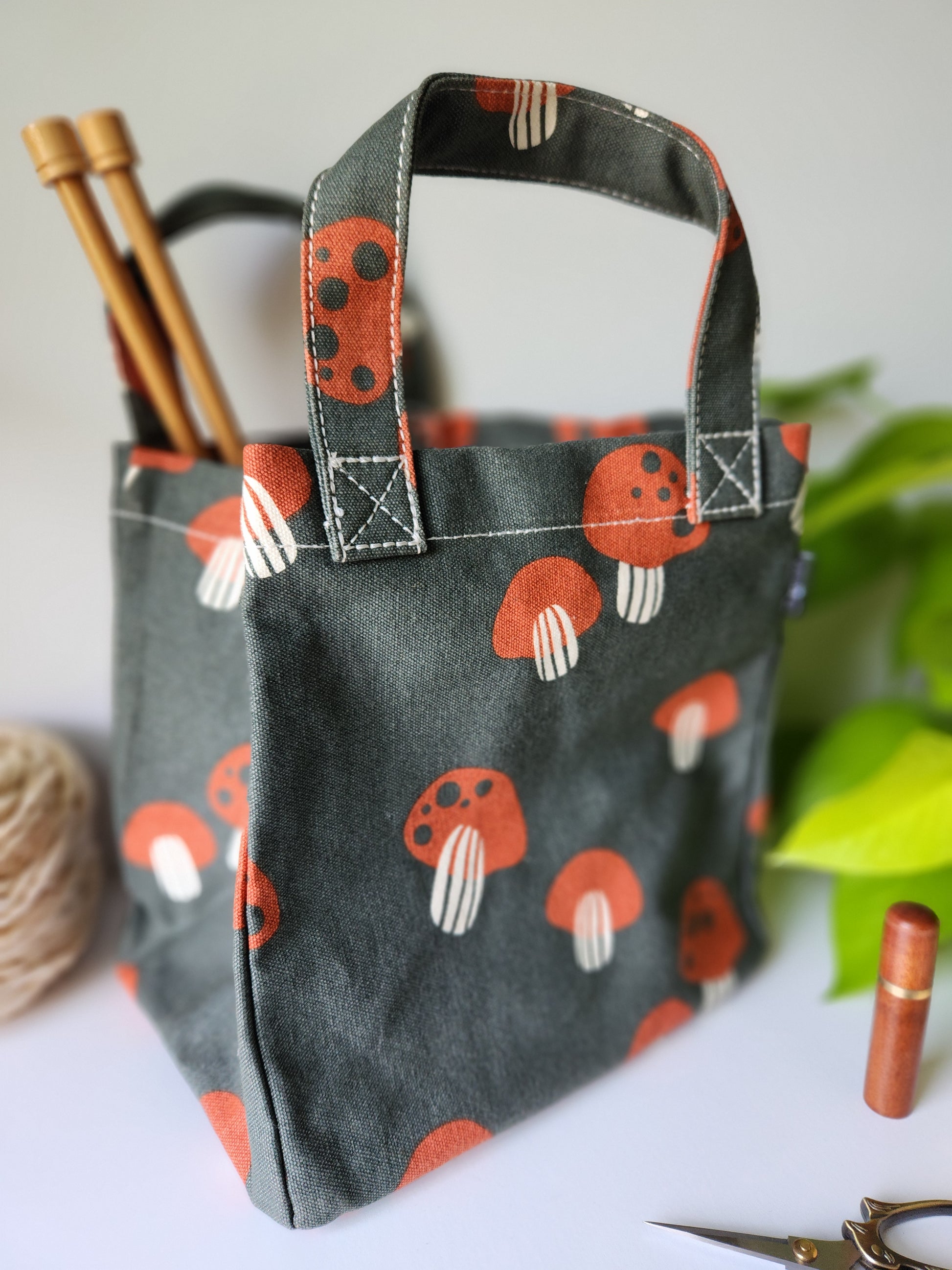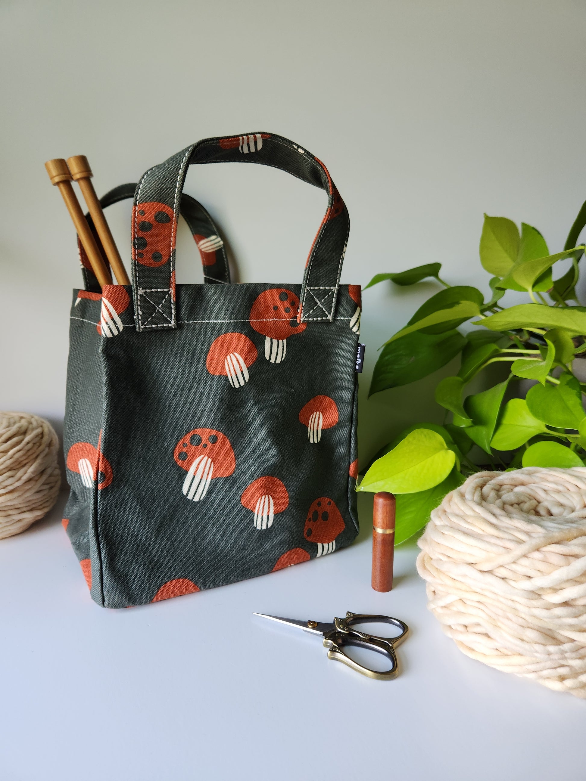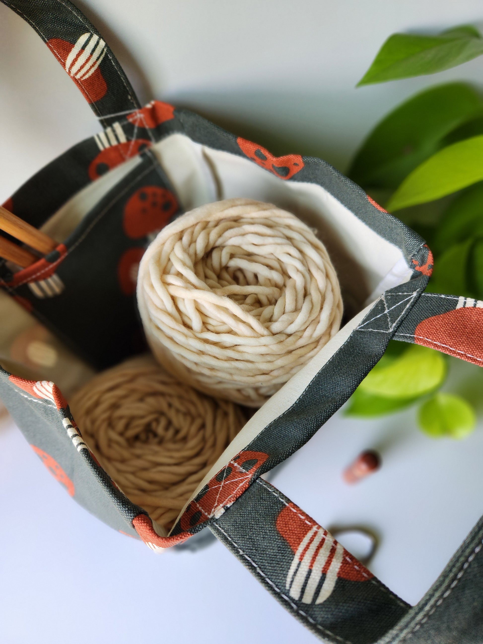 For yarny lovers, this tote holds up to 4 balls of super bulky yarn, or at least 10 balls of worsted weight yarn with plenty of room for your needles and pattern, too.