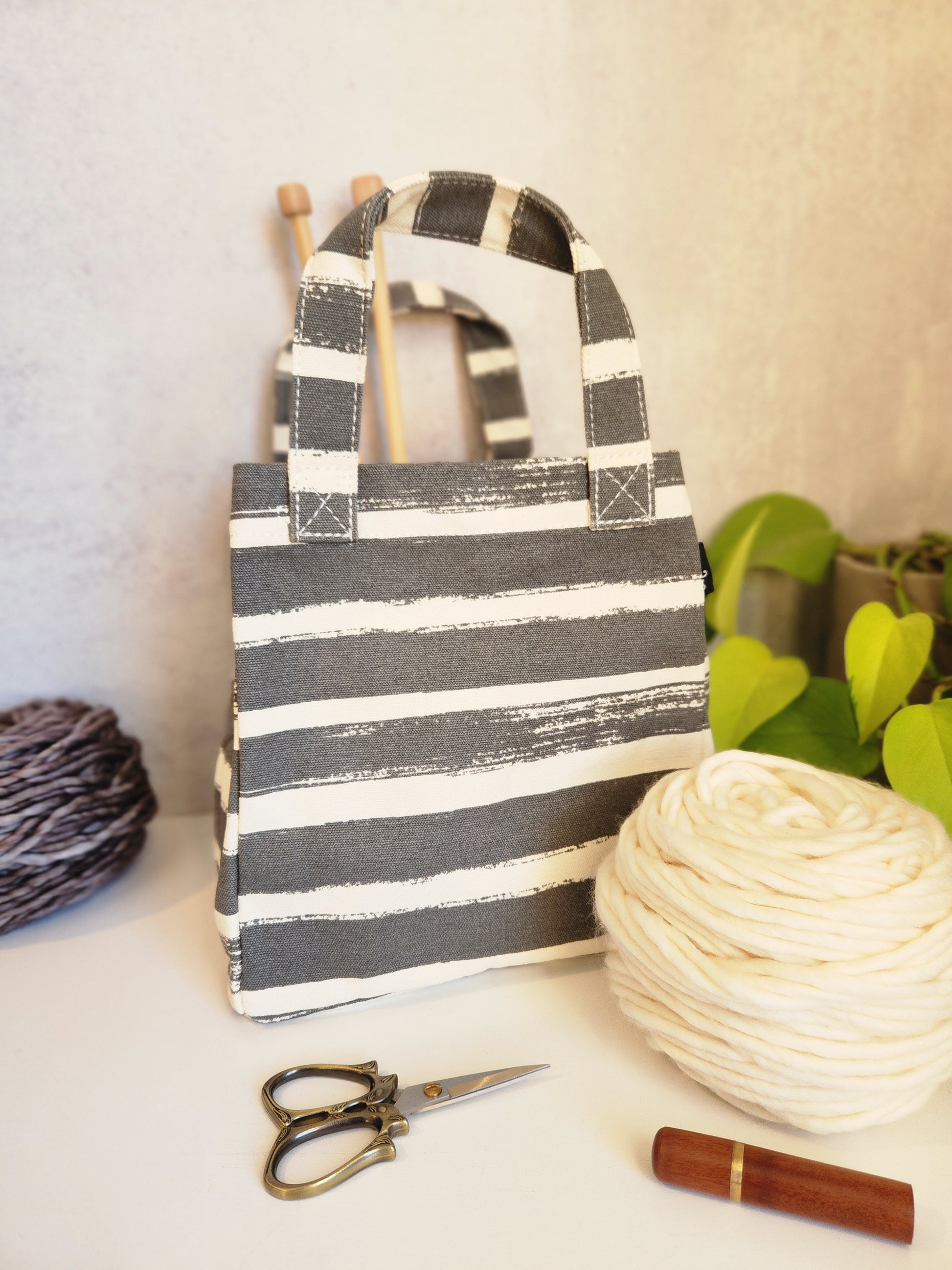 Knitting Project Bag, Lunch Tote, Stripes Charcoal