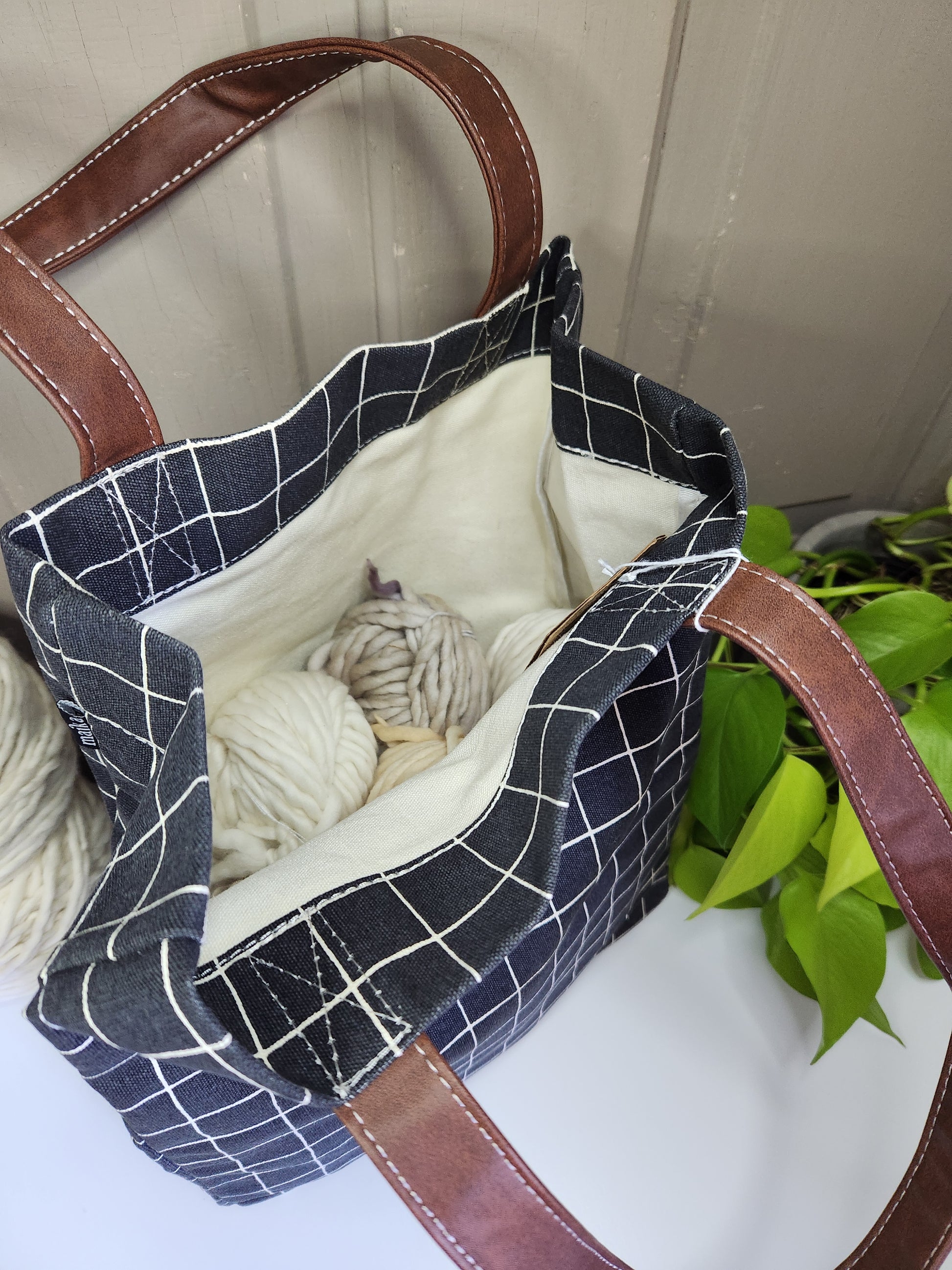 A soft but durable canvas tote, not just for the market - it also would make a great sweater sized project bag for knitters. This tote features an interior strap and hook to attach the Maika zipper pouches. Printed on recycled canvas with eco friendly pigment inks.