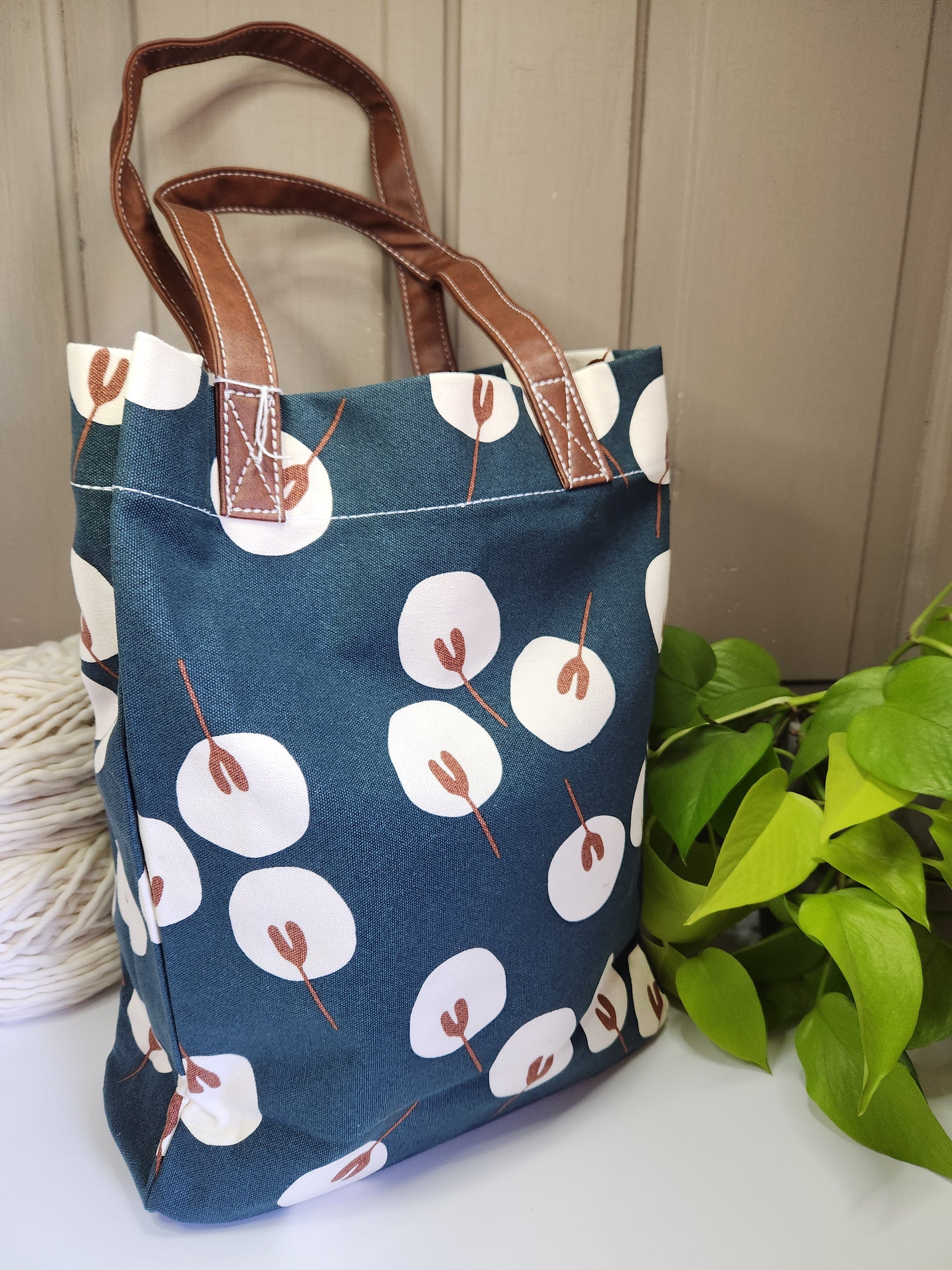 A soft but durable canvas tote, not just for the market - it also would make a great sweater sized project bag for knitters. This tote features an interior strap and hook to attach the Maika zipper pouches. Printed on recycled canvas with eco friendly pigment inks.