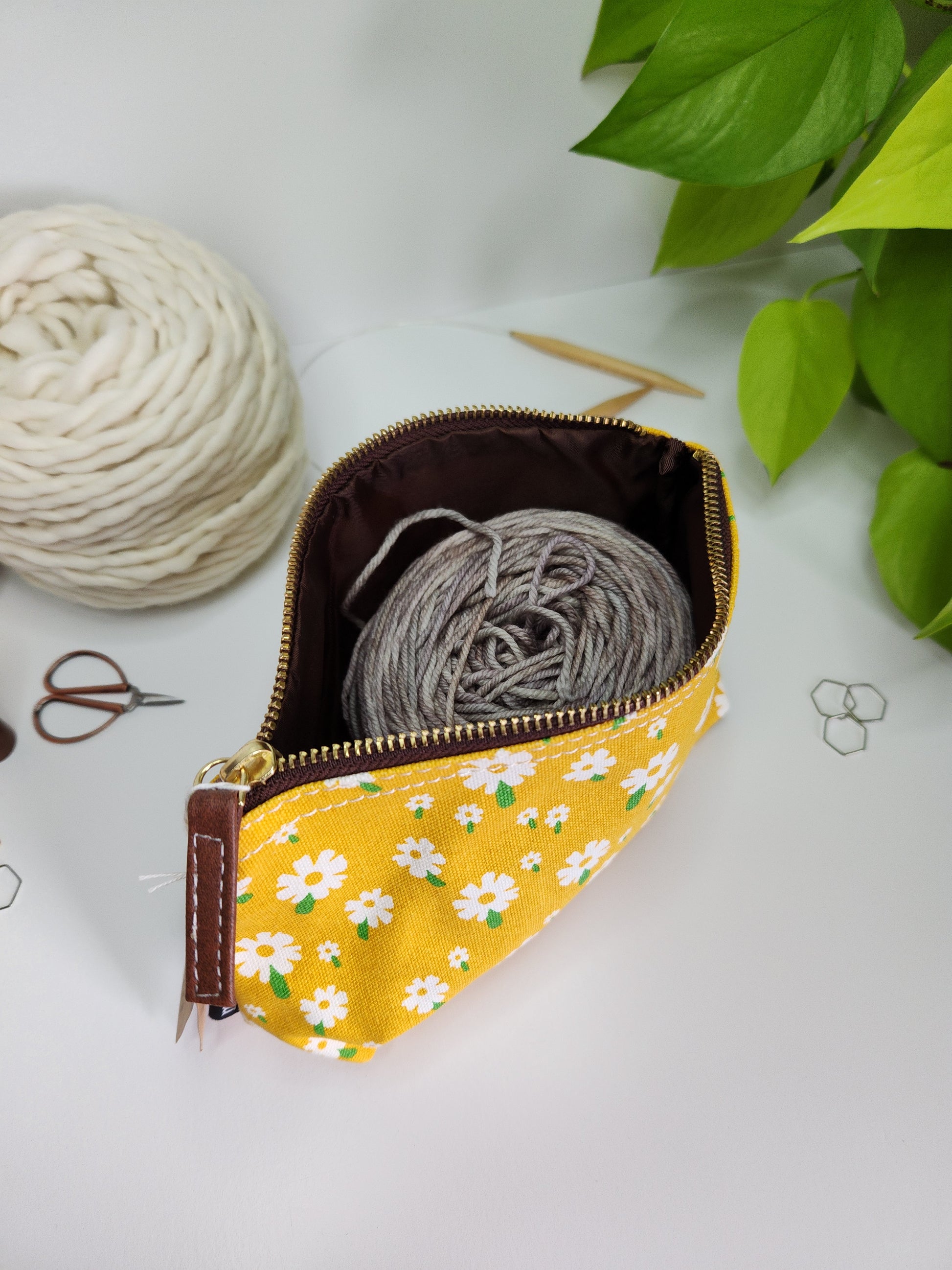 Not just for knitting, this cute zipper pouch can be used for a variety of organizing needs. Use it as a make-up bag, or for art and desktop supplies.... lots of possibilities here! It has an interior waterproof lining for easy cleaning.