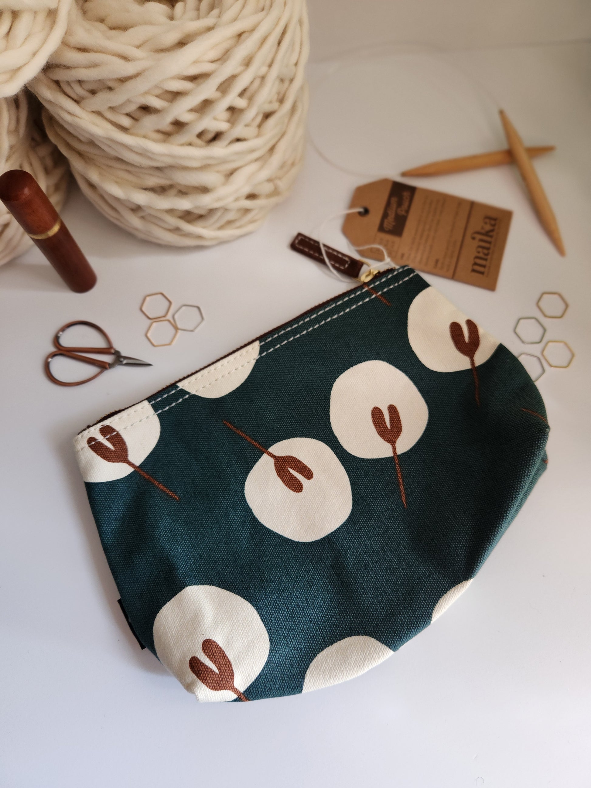 Not just for knitting, this cute zipper pouch can be used for a variety of organizing needs. Use it as a make-up bag, or for art and desktop supplies.... lots of possibilities here! It has an interior waterproof lining for easy cleaning.