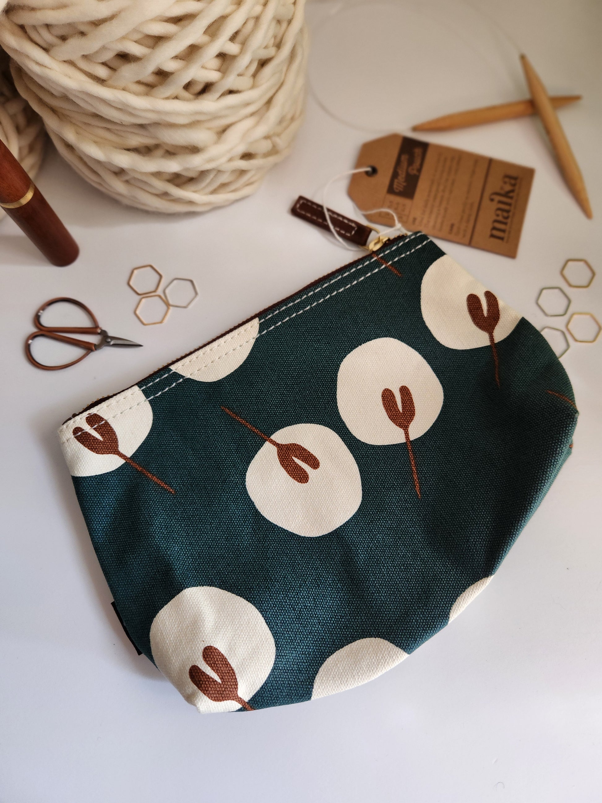 Knitting Project Bag, Medium Zipper Pouch, Tansy