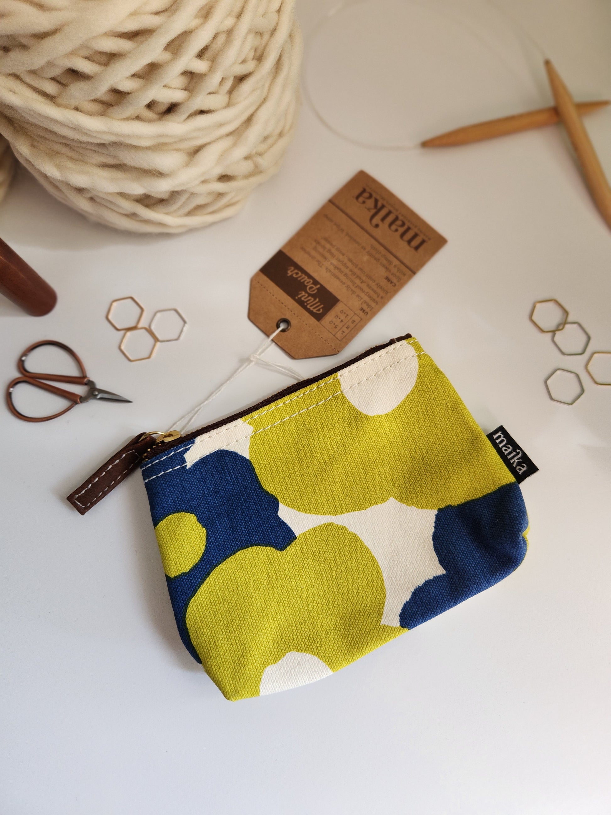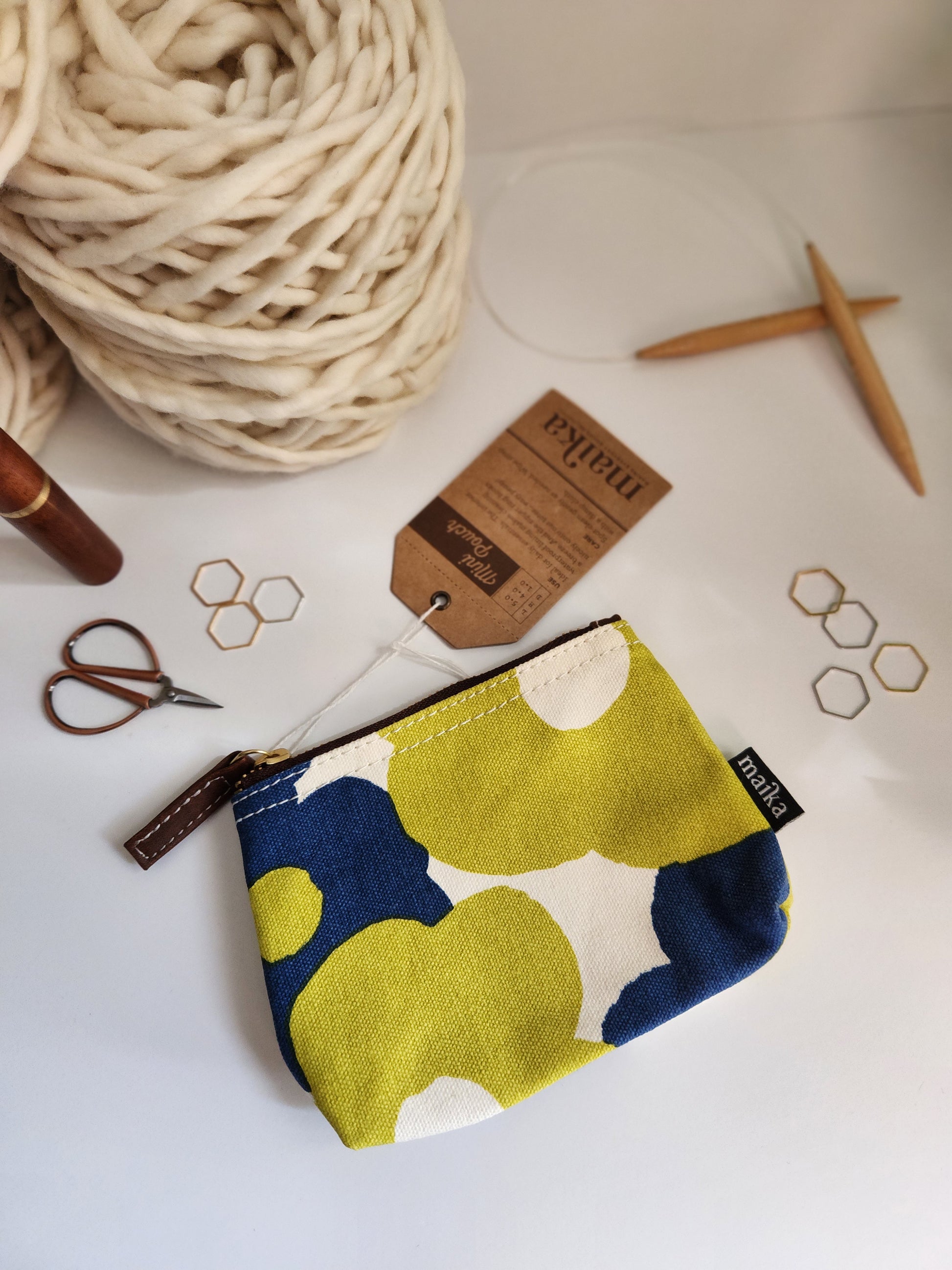 Knitting Project Bag, Small Zipper Pouch, Hana