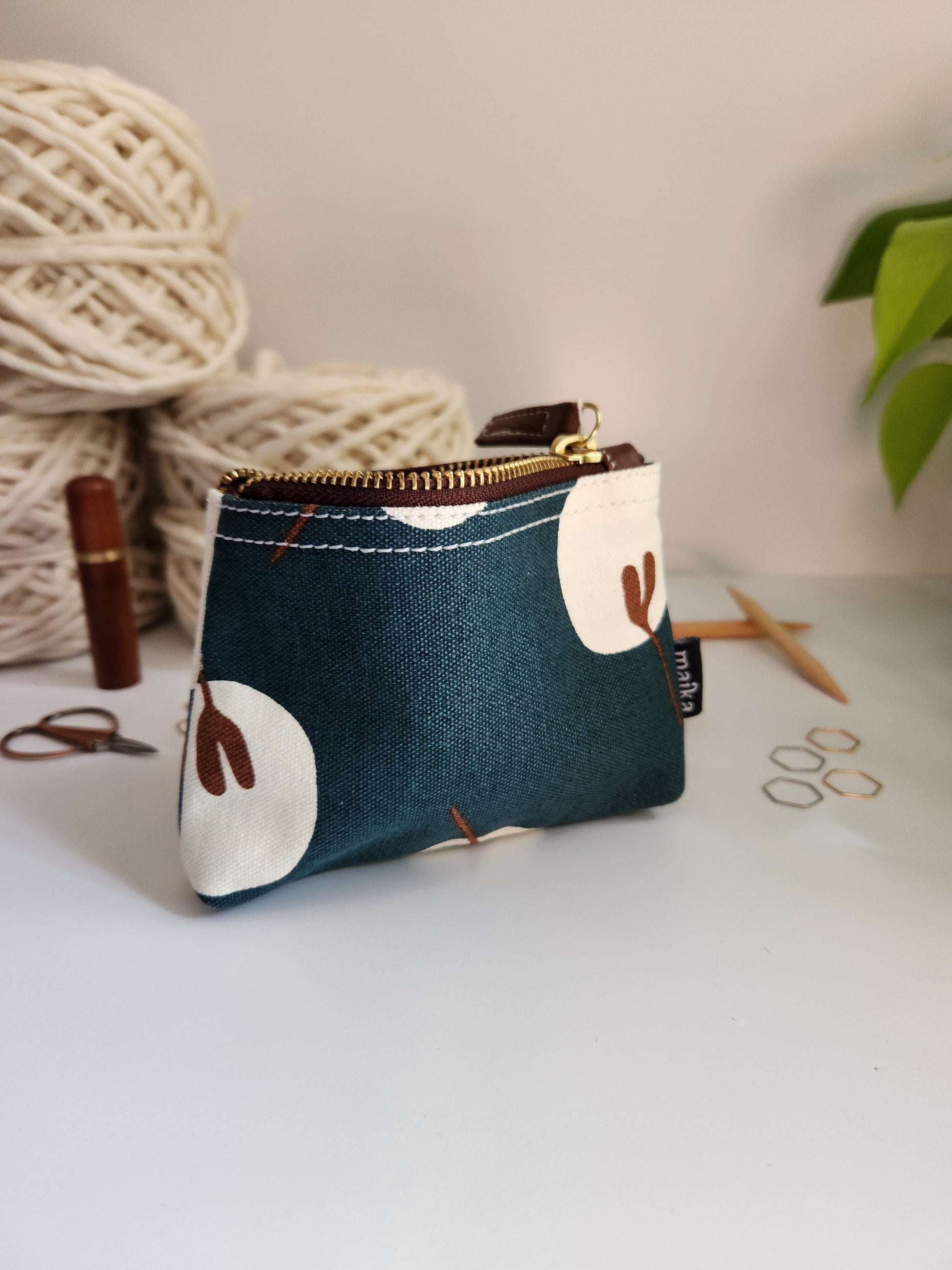 Knitting Project Bag, Small Zipper Pouch, Tansy