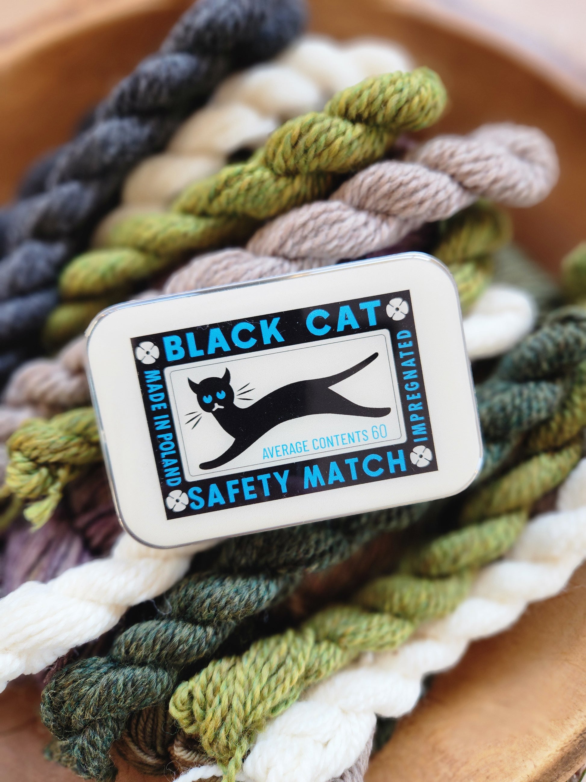 Large Black Cat Notions Tin.