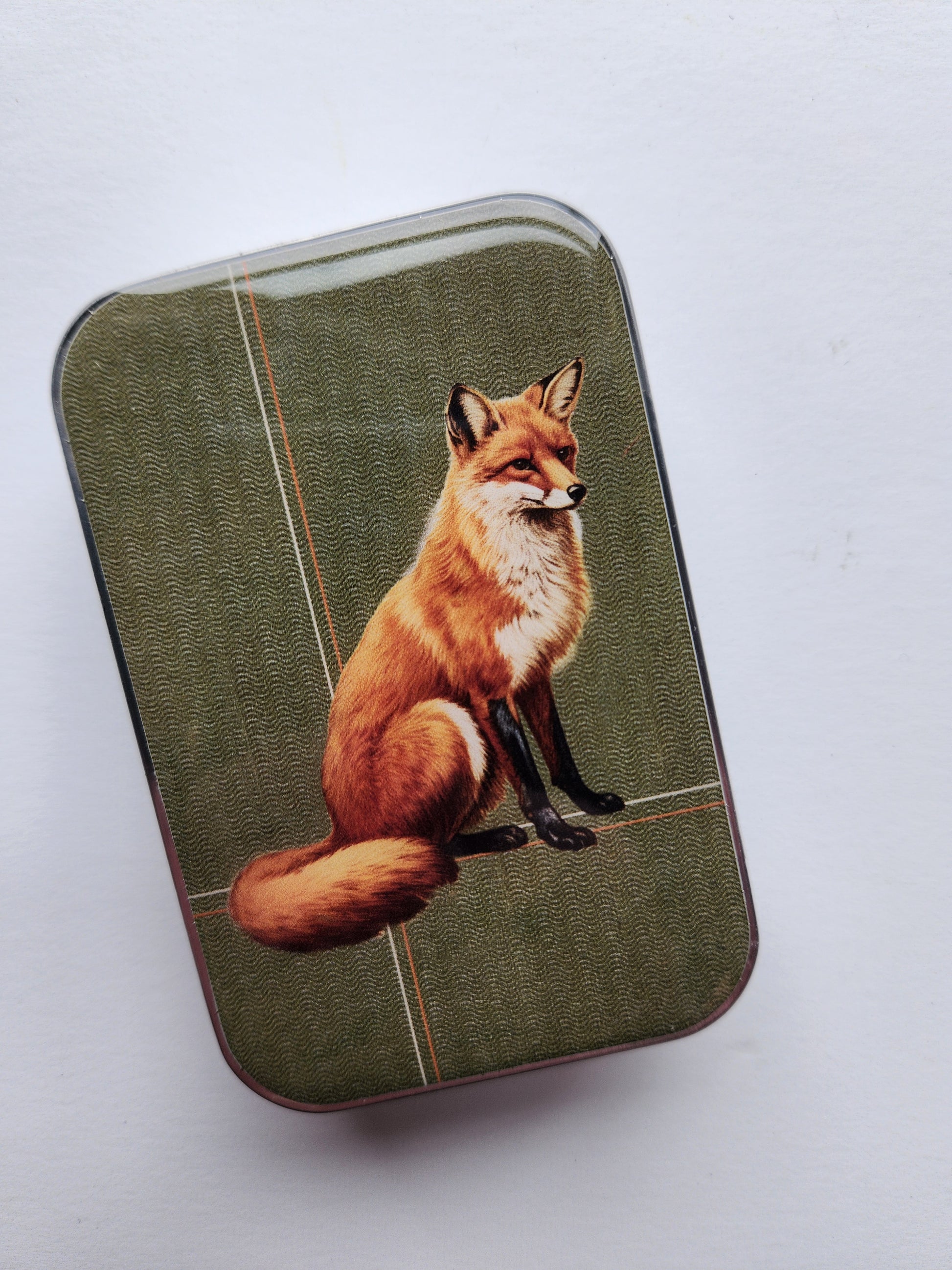 Adorable handy slider tin with vintage imagery, topped with a non toxic resin to give you a glossy notions box to last for years to come.