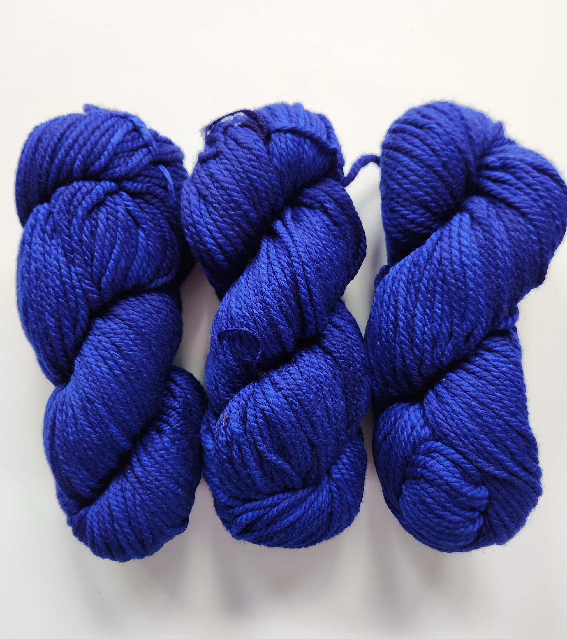 Malabrigo Chunky is 100% merino wool. 3 ply. Each skein is 104 yards of hand-dyed perfection, great for any knit or crochet creations, including accessories, garments, baby and kids items, housewares, toys, cables, textured stitches, color-work.