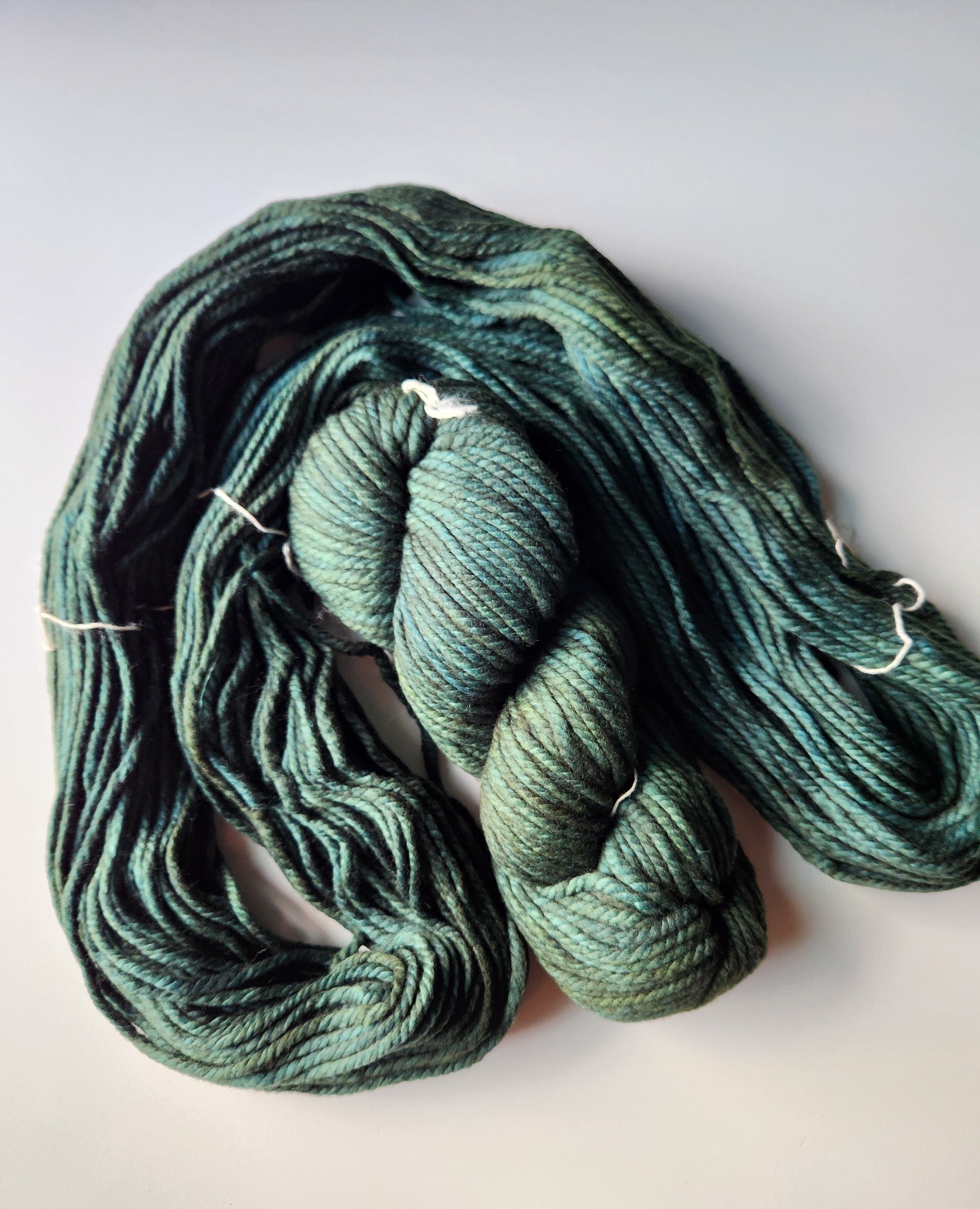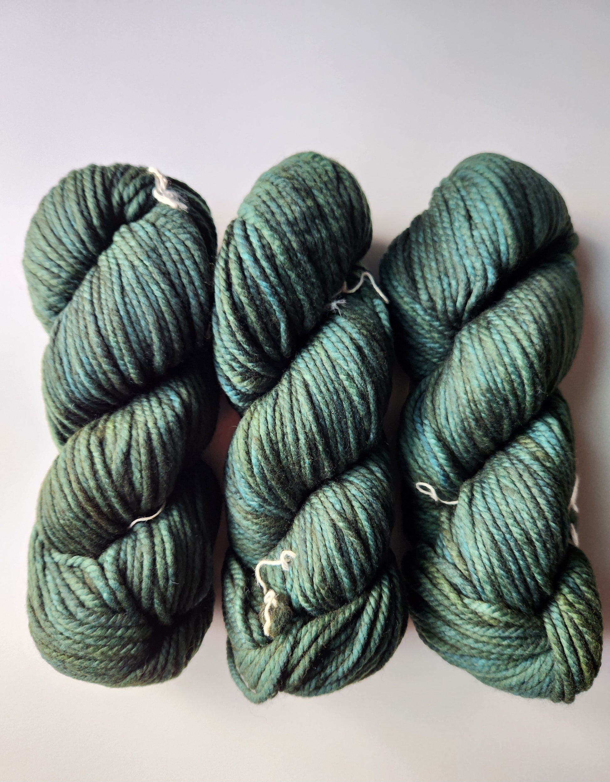 Malabrigo Chunky is 100% merino wool. 3 ply. Each skein is 104 yards of hand-dyed perfection, great for any knit or crochet creations, including accessories, garments, baby and kids items, housewares, toys, cables, textured stitches, color-work.