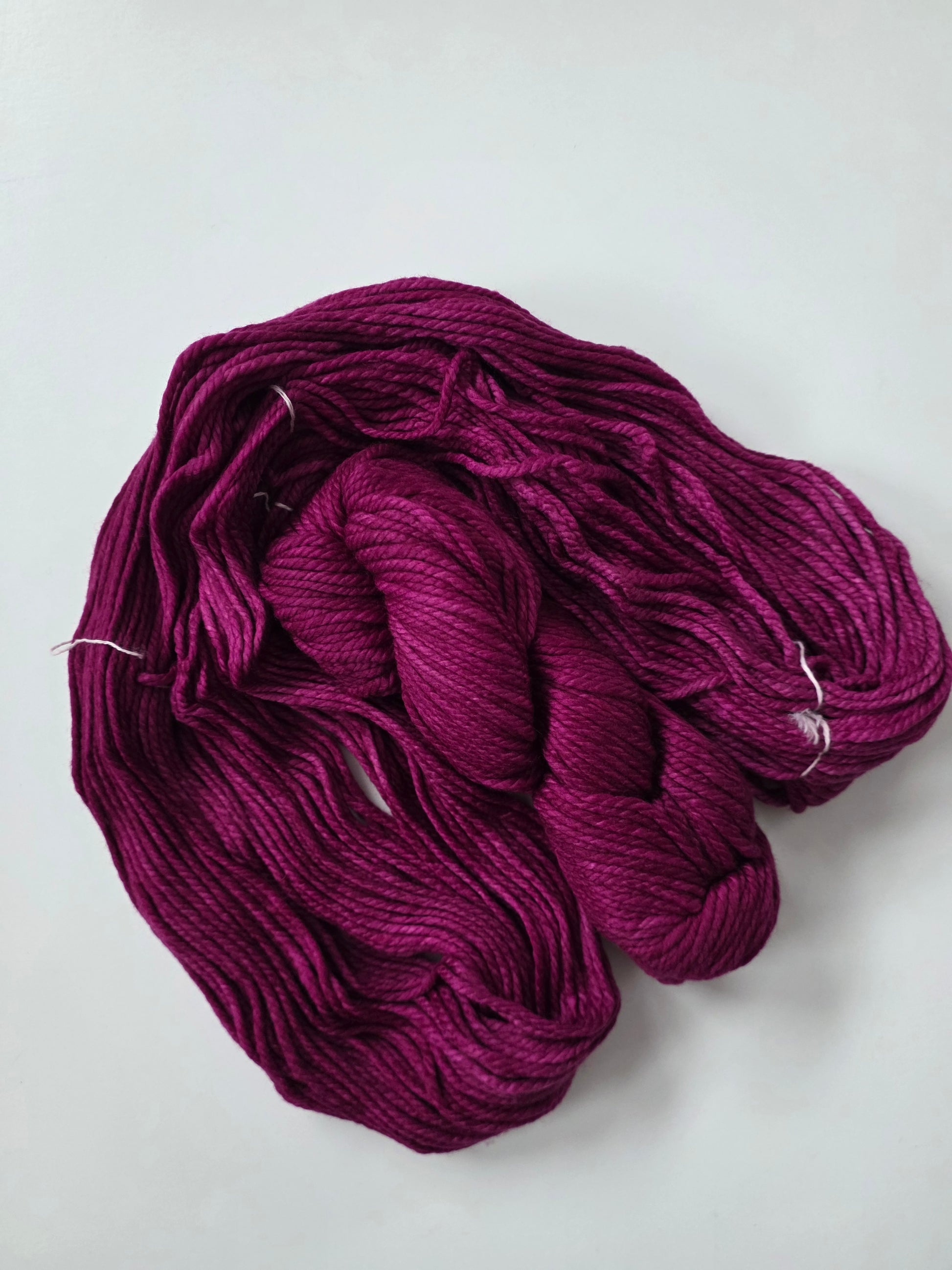 Malabrigo Chunky is 100% merino wool. 3 ply. Each skein is 104 yards of hand-dyed perfection, great for any knit or crochet creations, including accessories, garments, baby and kids items, housewares, toys, cables, textured stitches, color-work.