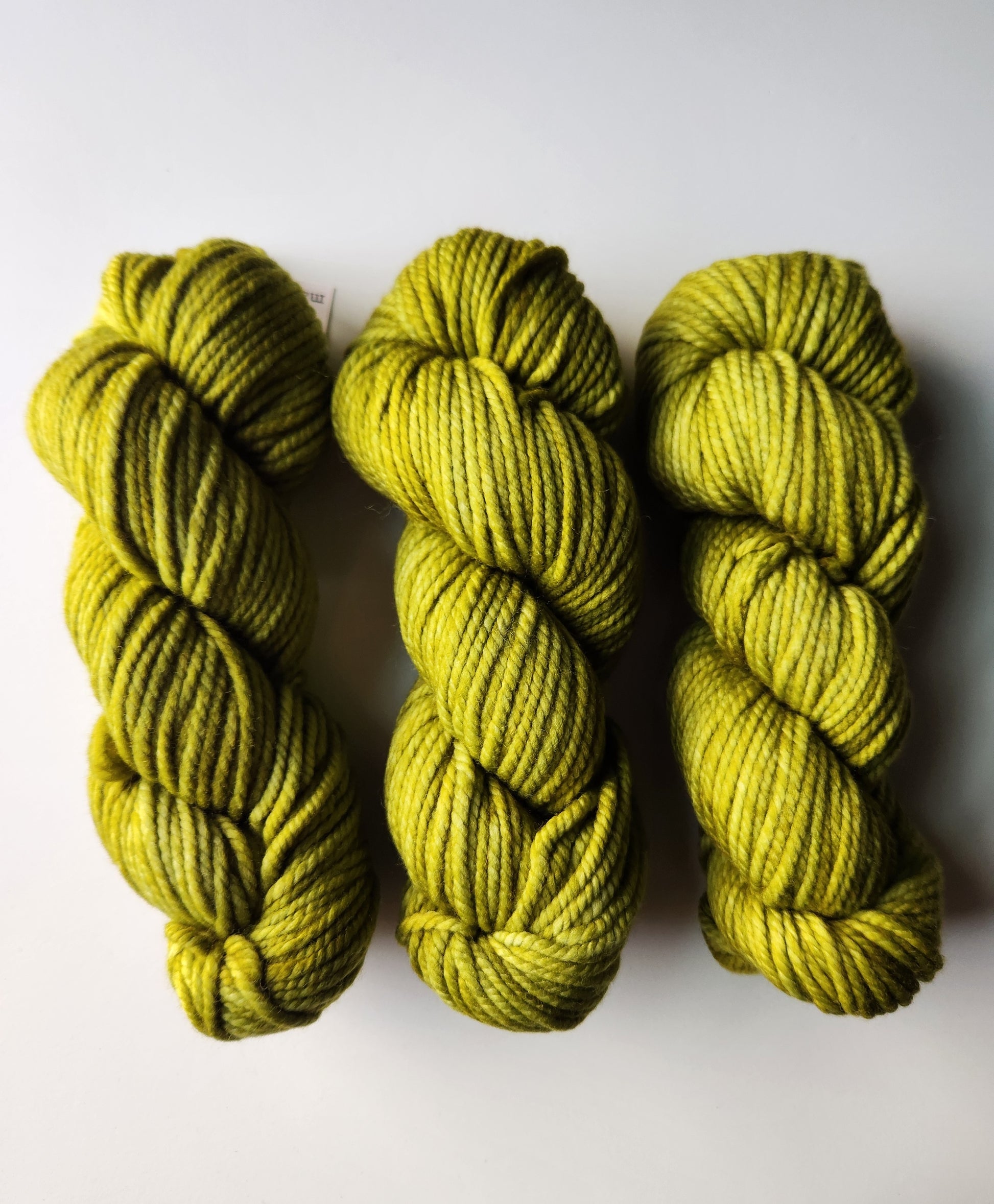 Malabrigo Chunky is 100% merino wool. 3 ply. Each skein is 104 yards of hand-dyed perfection, great for any knit or crochet creations, including accessories, garments, baby and kids items, housewares, toys, cables, textured stitches, color-work.