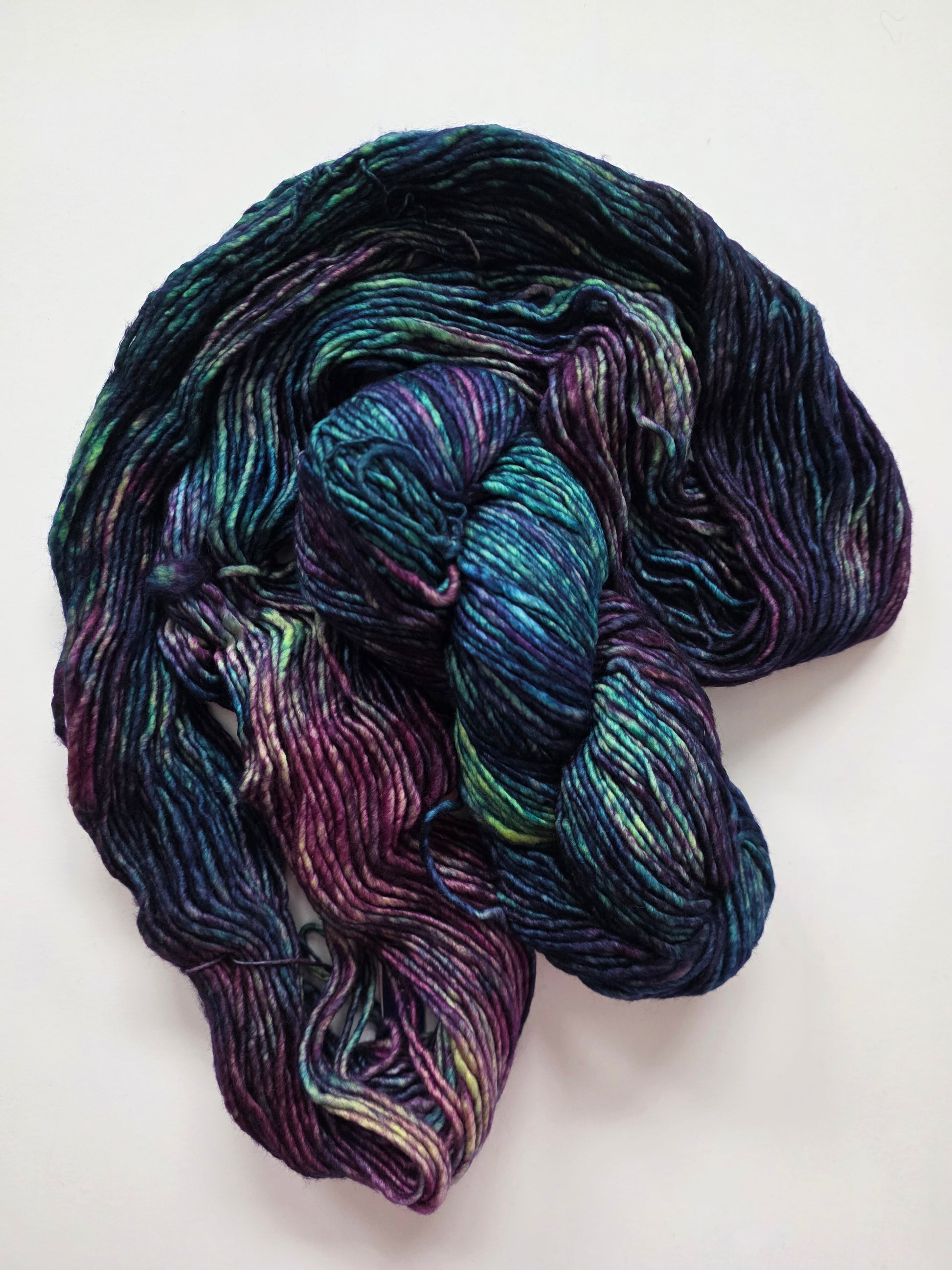 Malabrigo Mecha 100% superwash merino wool. Single ply. Each skein is 130 yards of hand-dyed perfection, great for any knit or crochet creations, including accessories, garments, baby and kids items, housewares, toys, cables, textured stitches, color-work.