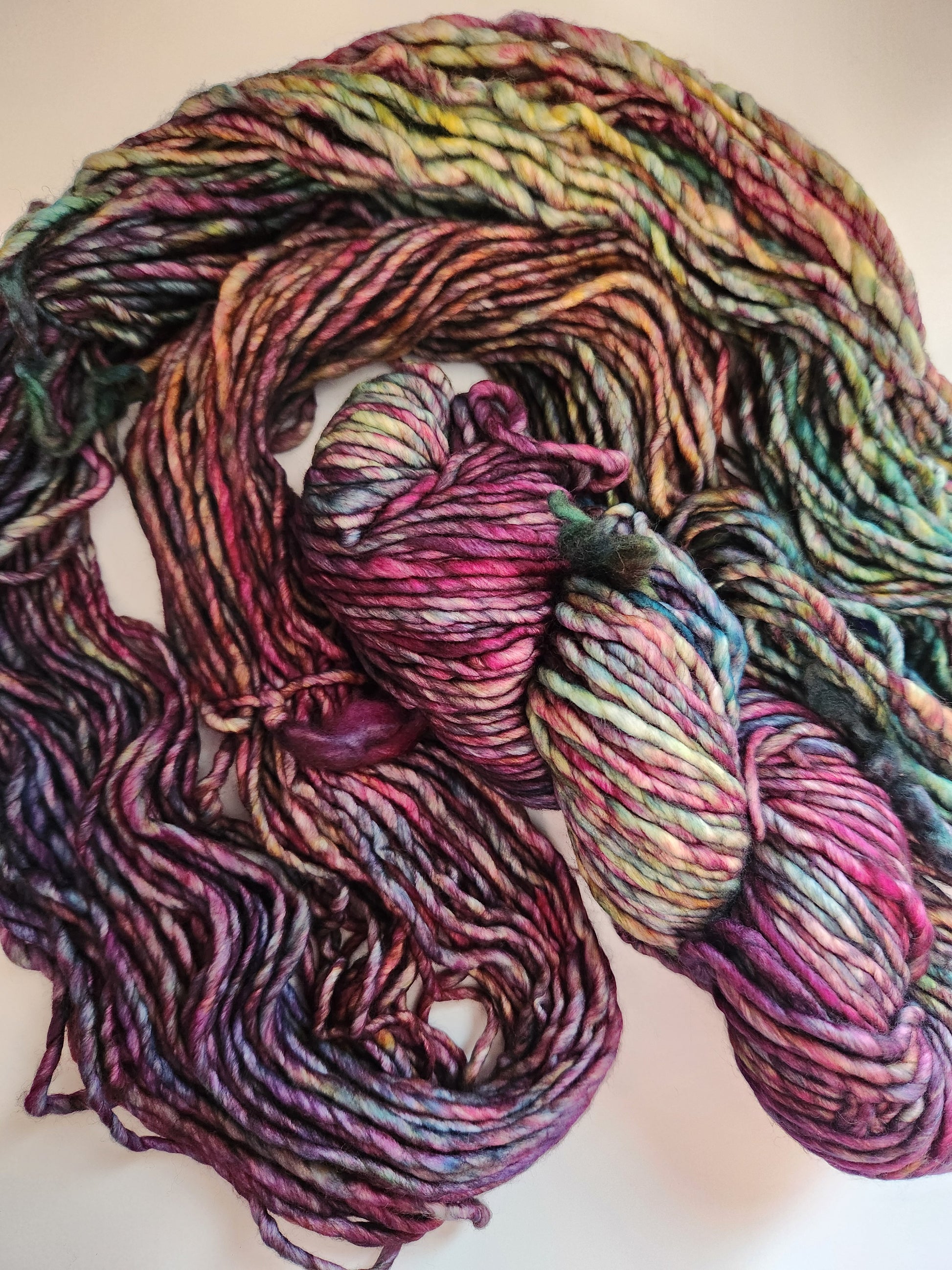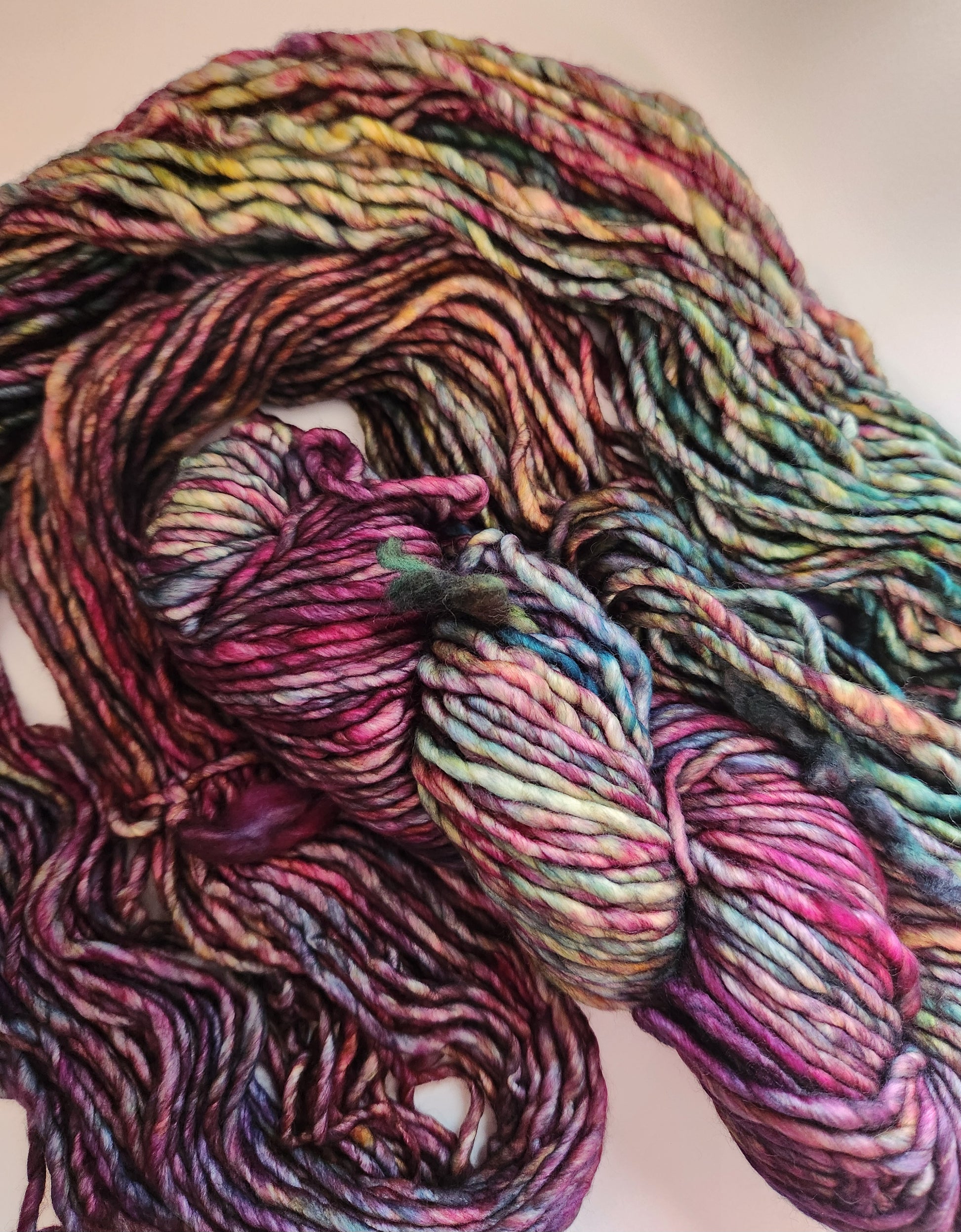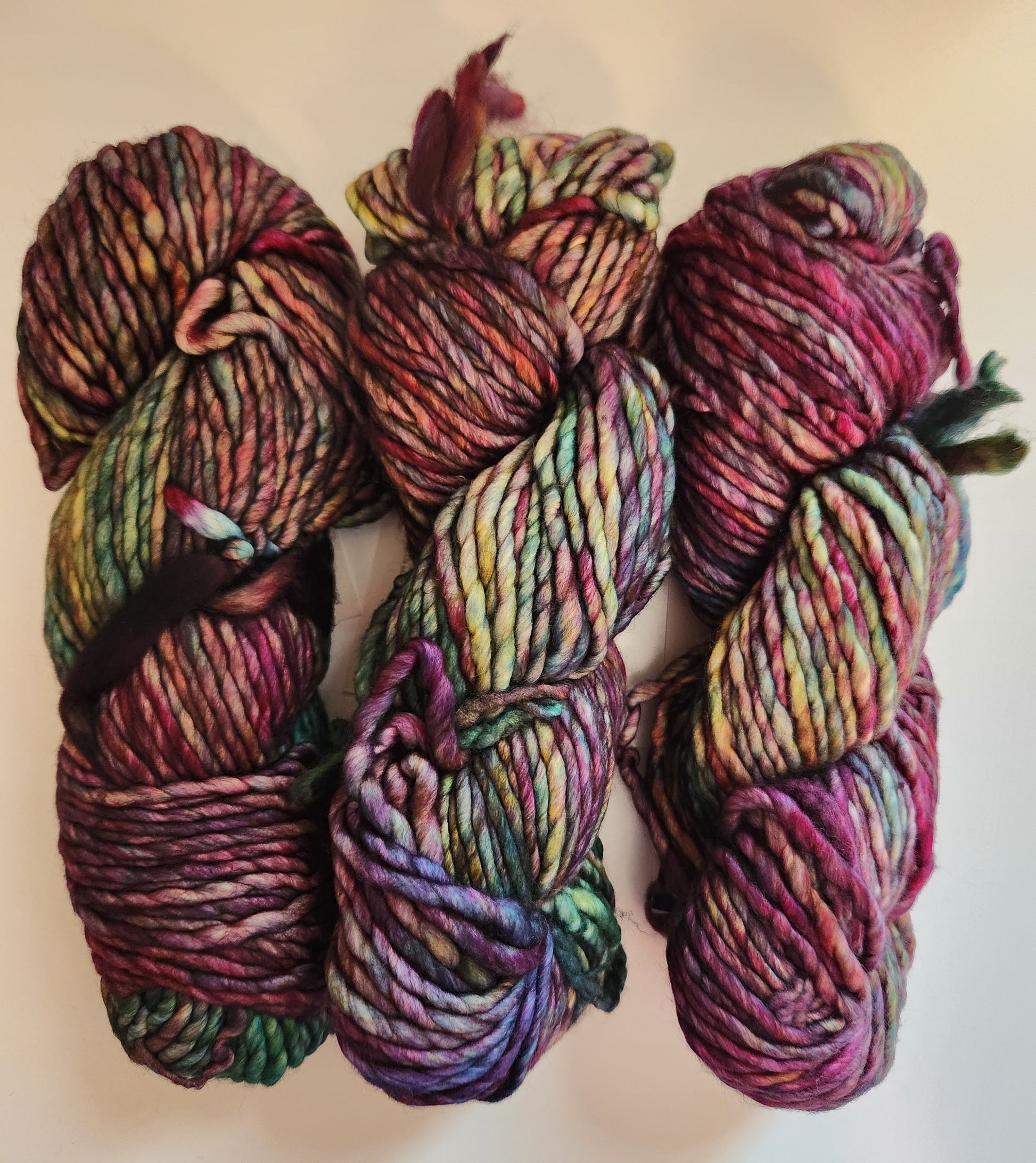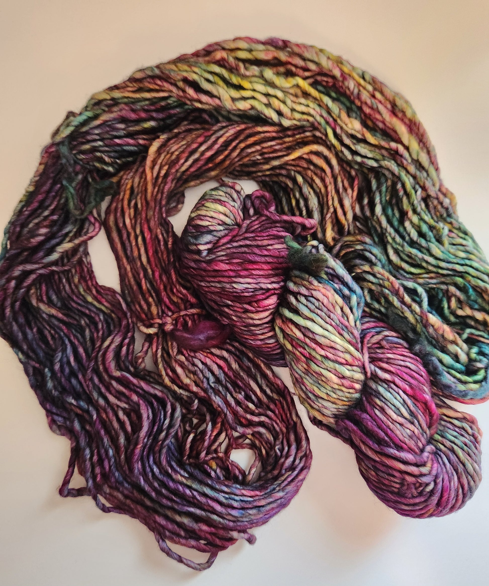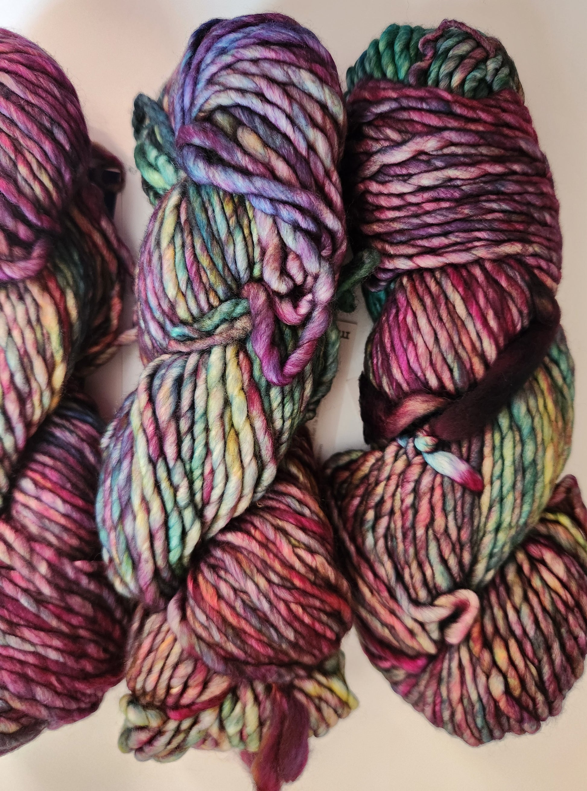 Malabrigo Noventa 100% superwash merino wool. Single ply twist. Each skein is 90 yards of incredibly cozy hand dyed yarn. Great for quick knits, textured stitches, hats, cowls, scarves, outerwear.