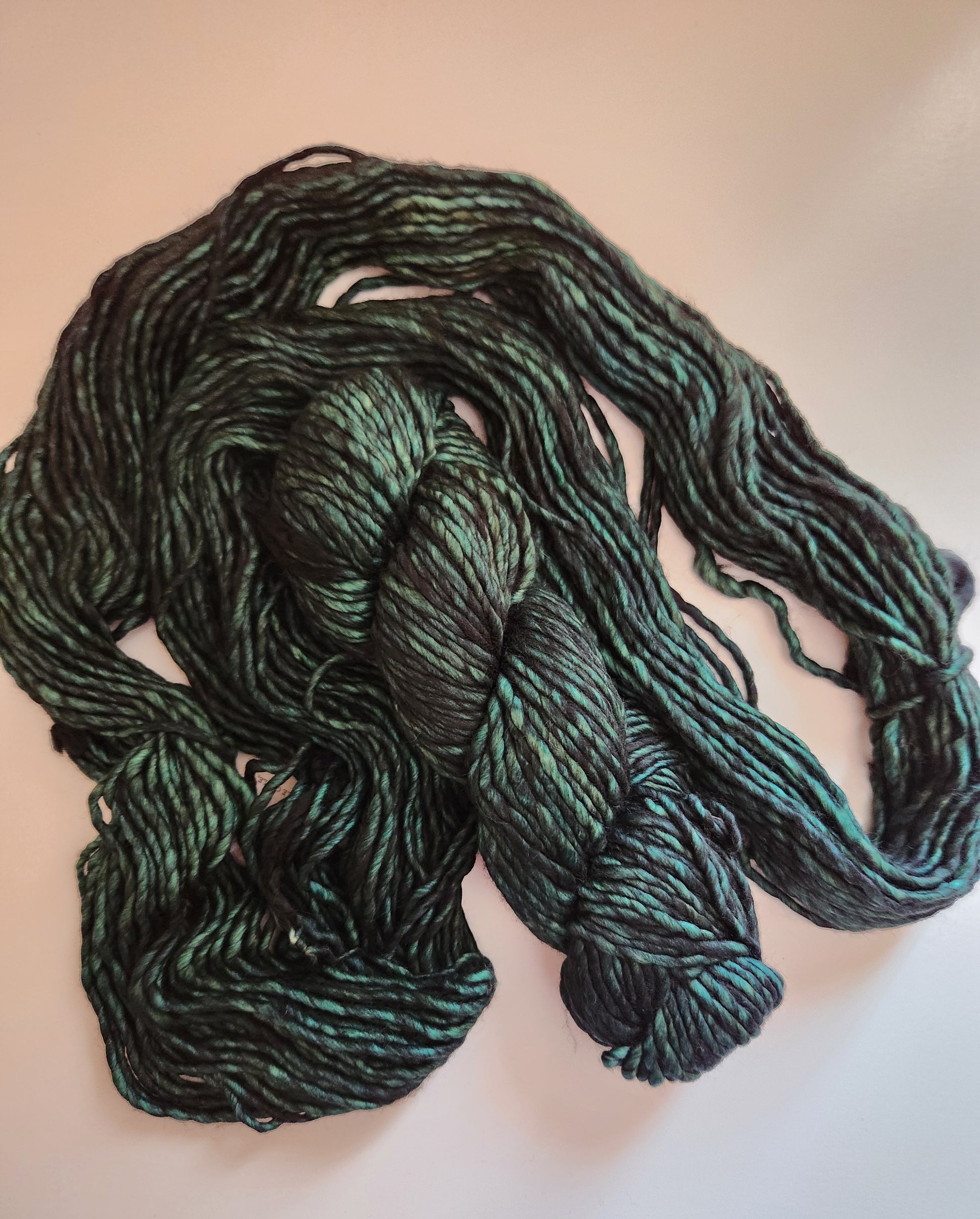 This yarn can be used with a variety of the patterns on my website, but looks especially great with the Gales of November Bulky , Birch Leaves or North Road Bulky patterns. This yarn is perfect for the Sugar Loaf Shawl or Shovel Point Shawl.