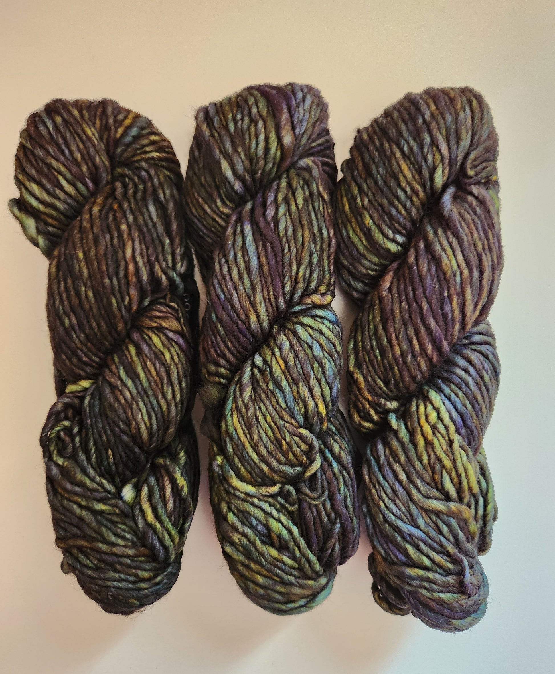 This yarn can be used with a variety of the patterns on my website, but looks especially great with the Gales of November Bulky , Birch Leaves or North Road Bulky patterns. This yarn is perfect for the Sugar Loaf Shawl or Shovel Point Shawl.