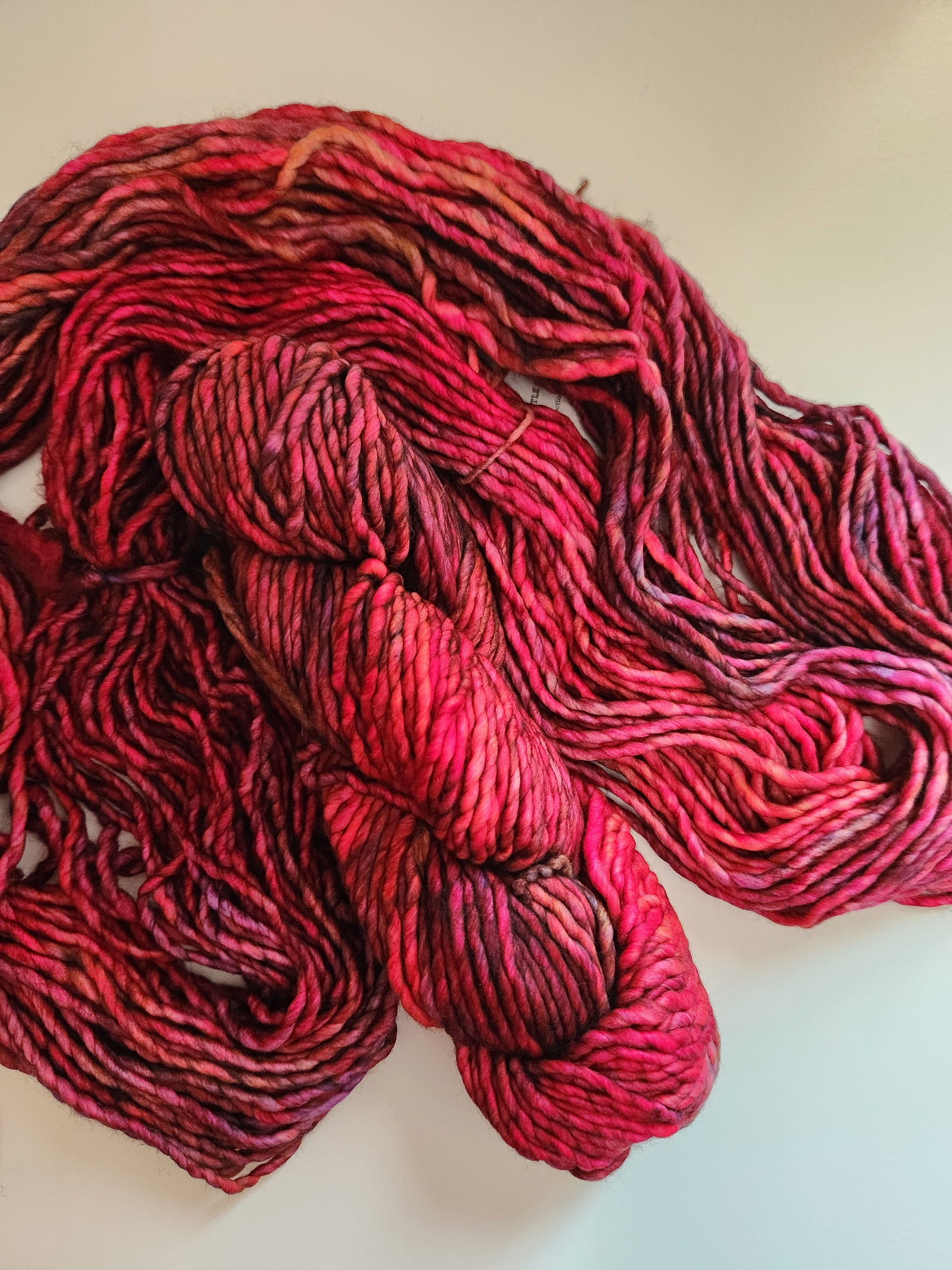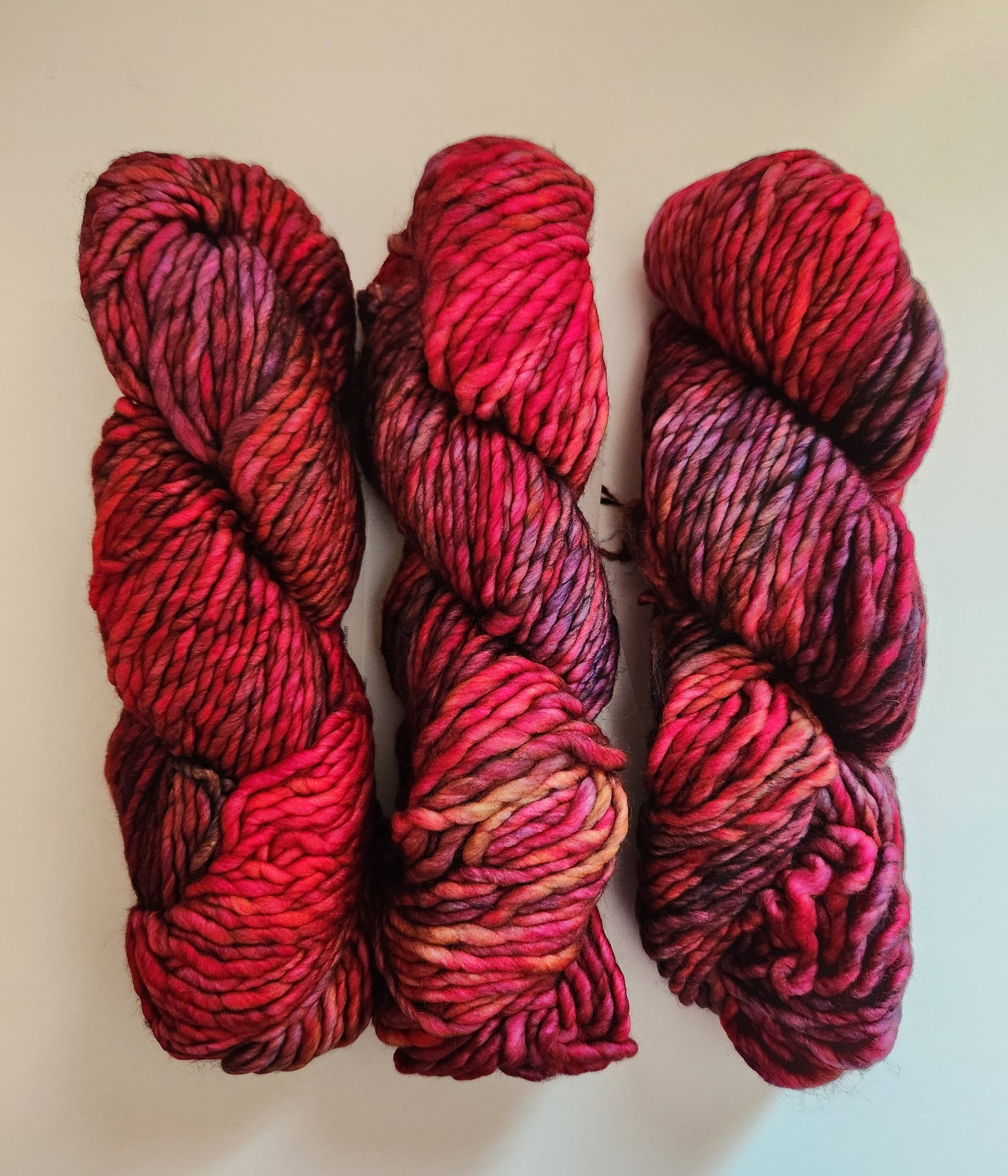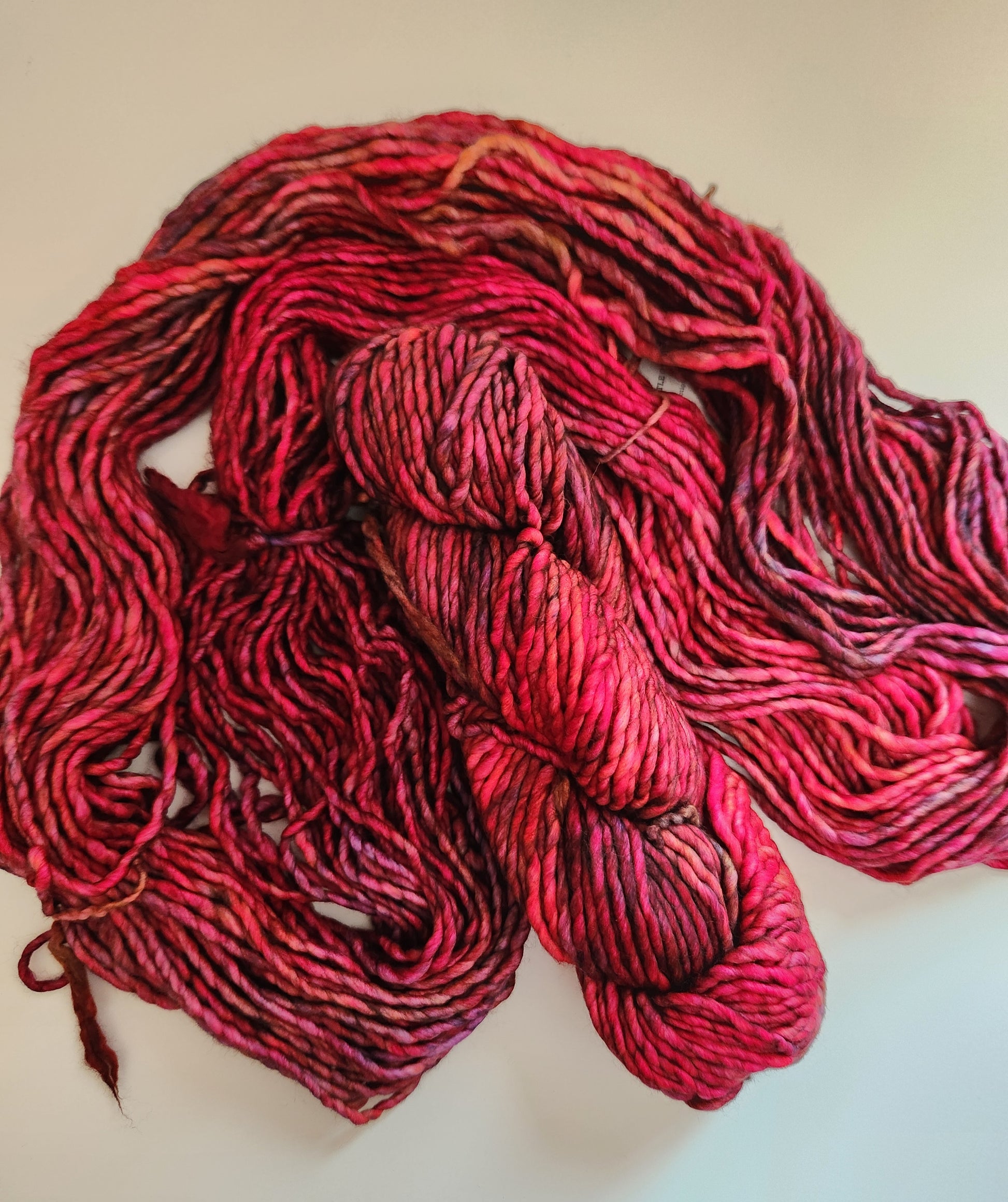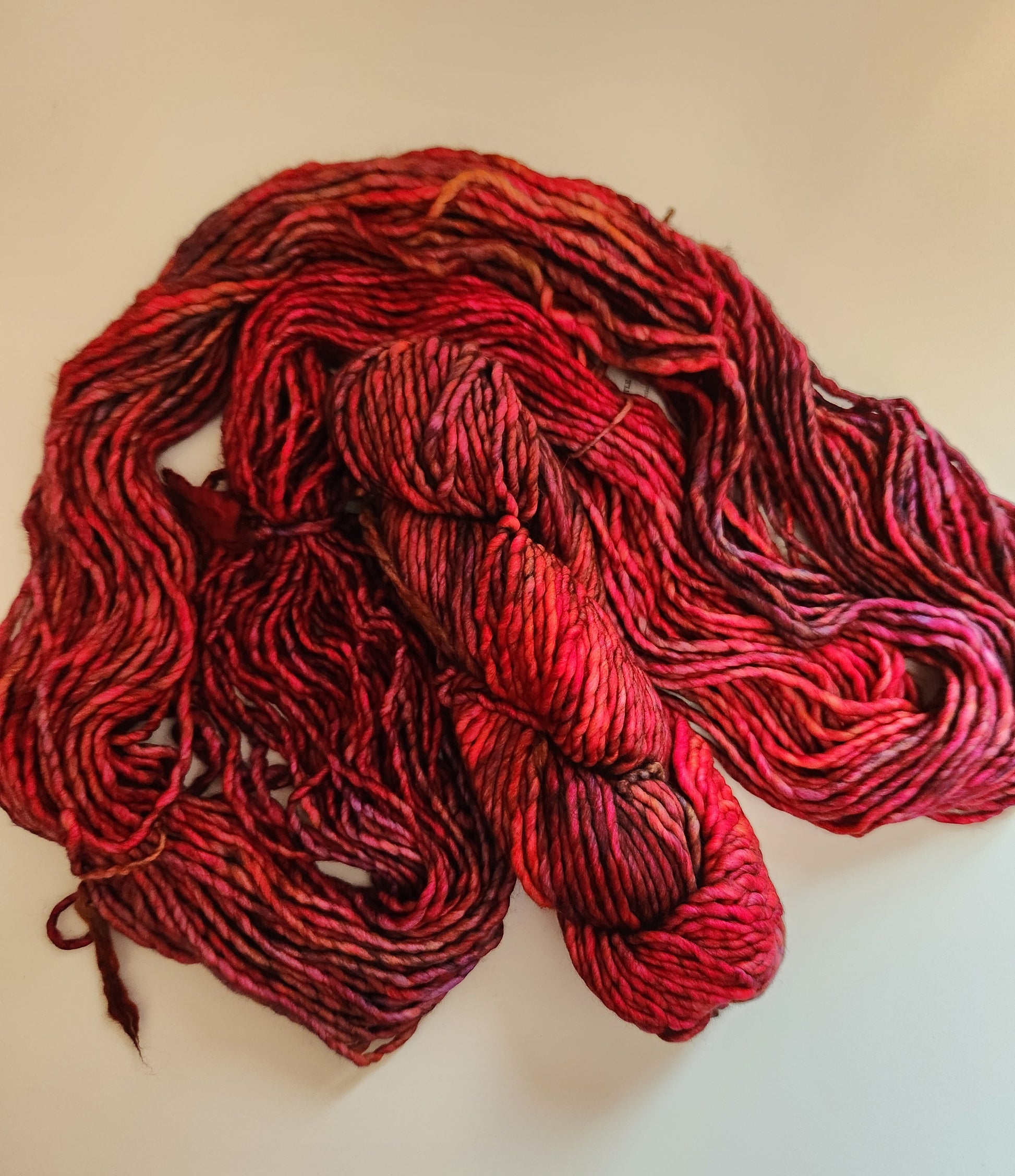 Malabrigo Noventa 100% superwash merino wool. Single ply twist. Each skein is 90 yards of incredibly cozy hand dyed yarn. Great for quick knits, textured stitches, hats, cowls, scarves, outerwear.