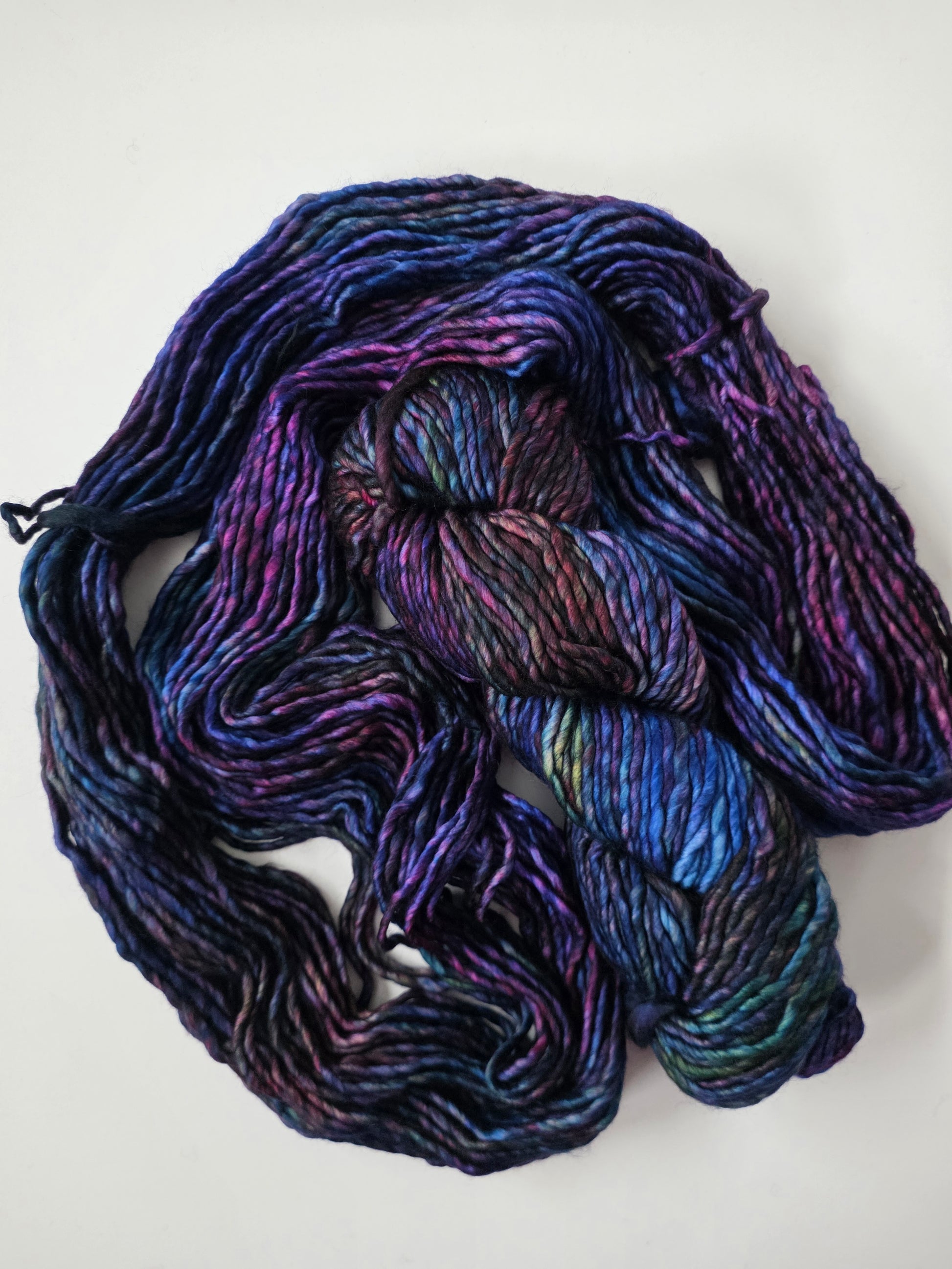 Malabrigo Noventa 100% superwash merino wool. Single ply twist. Each skein is 90 yards of incredibly cozy hand dyed yarn. Great for quick knits, textured stitches, hats, cowls, scarves, outerwear.
