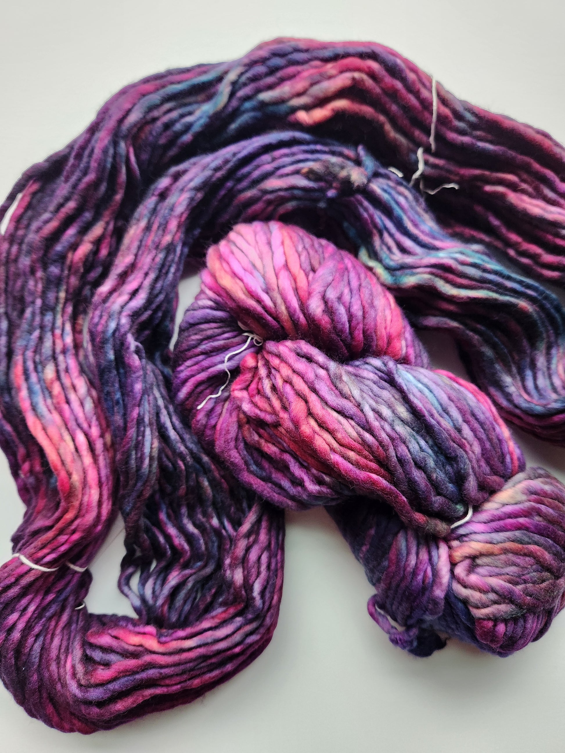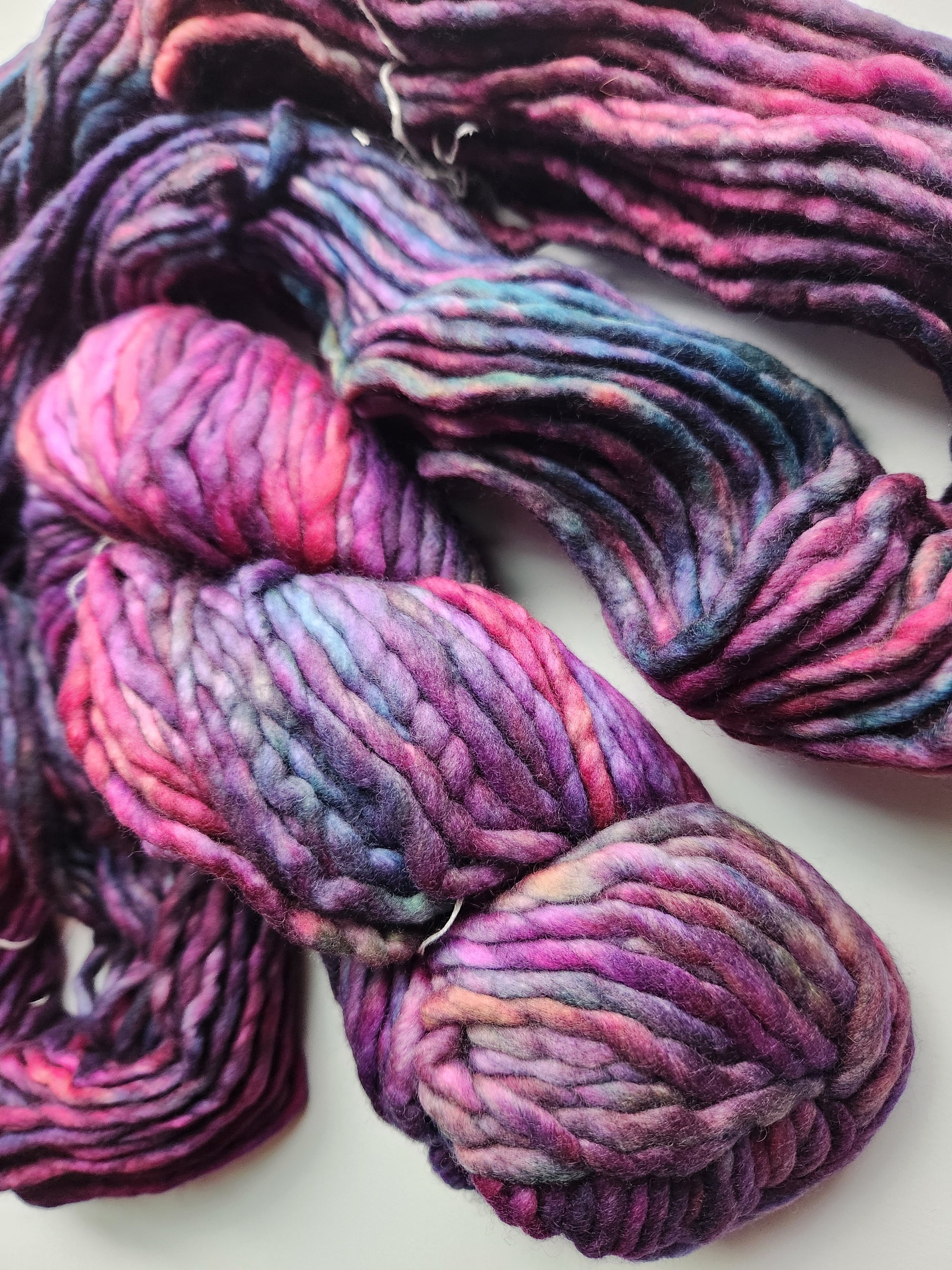 Malabrigo Rasta 100% merino wool. Single ply slightly felted with a twist. Each skein is 90 yards of incredibly cozy hand dyed yarn. Great for quick knits, textured stitches, hats, cowls, scarves, outerwear.