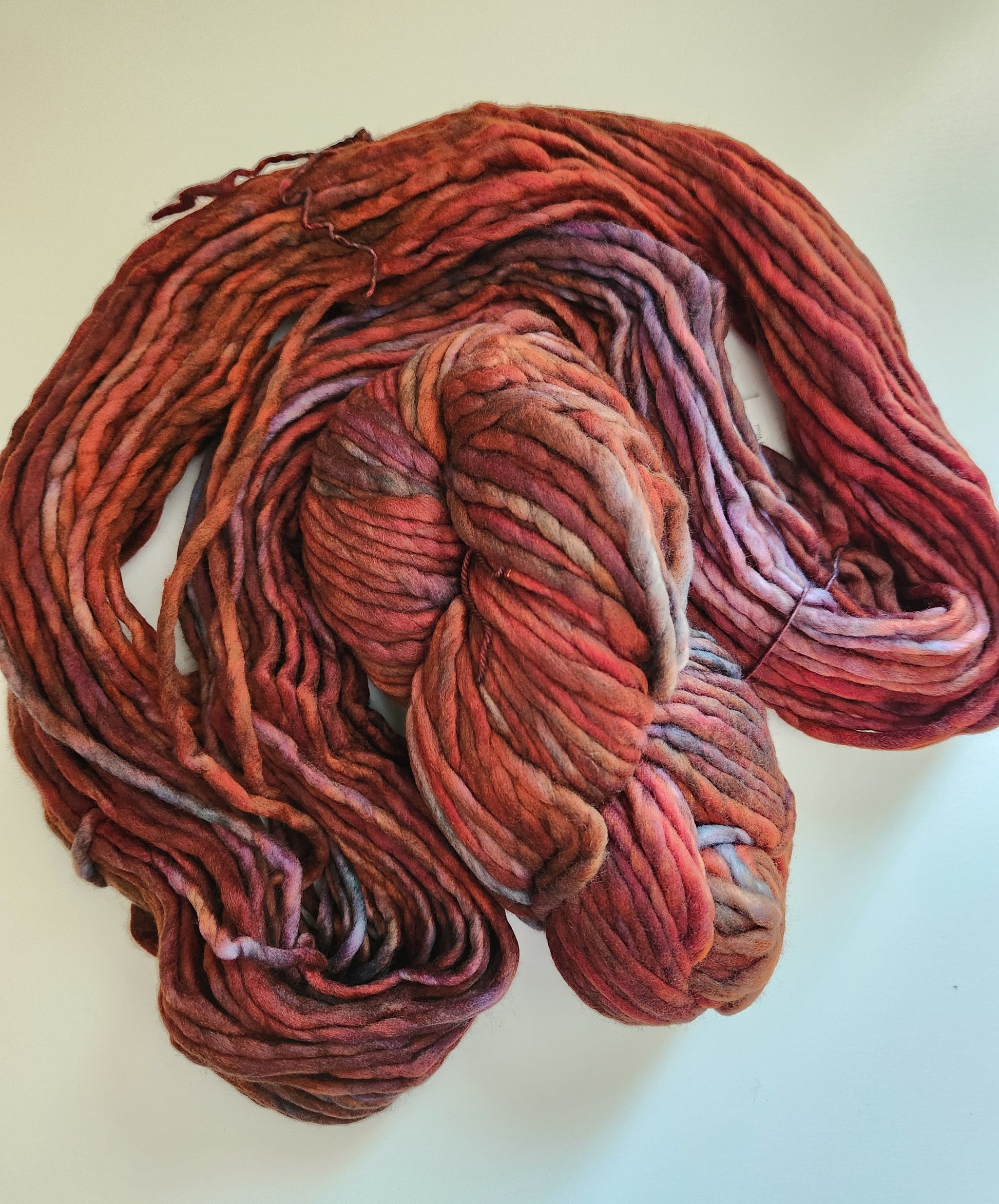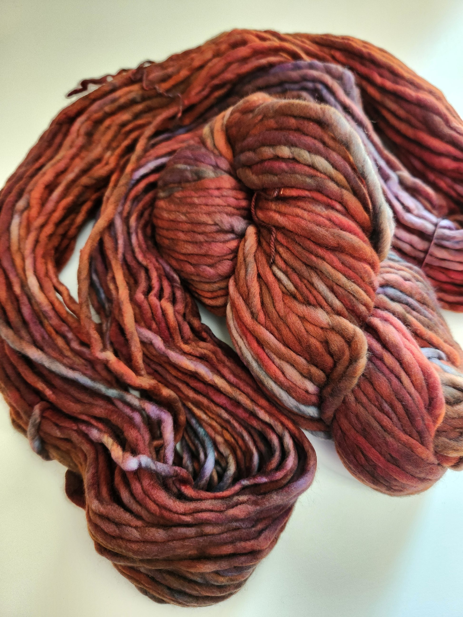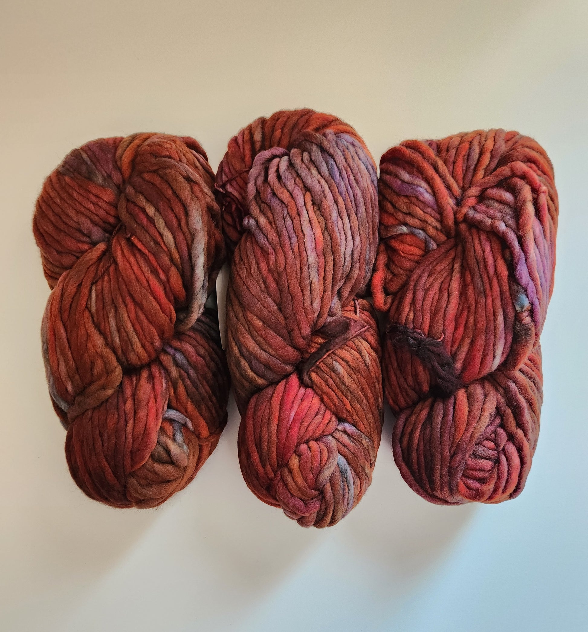 Malabrigo Rasta 100% merino wool. Single ply slightly felted with a twist. Each skein is 90 yards of incredibly cozy hand dyed yarn. Great for quick knits, textured stitches, hats, cowls, scarves, outerwear.