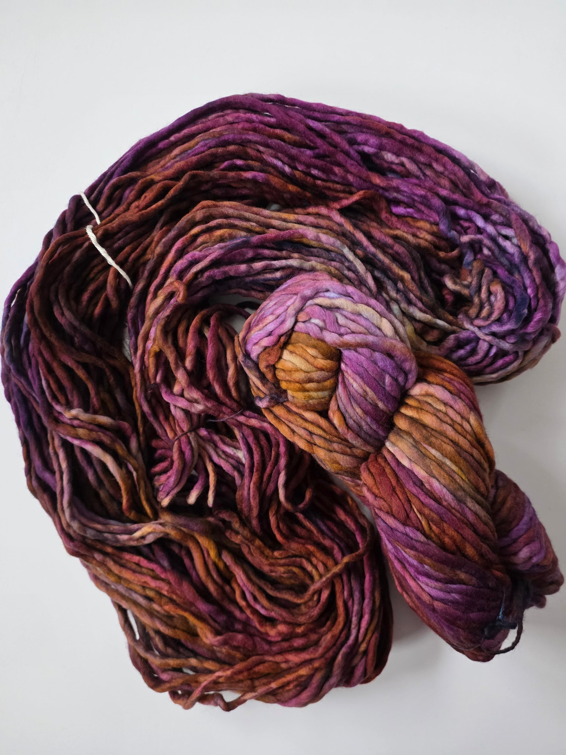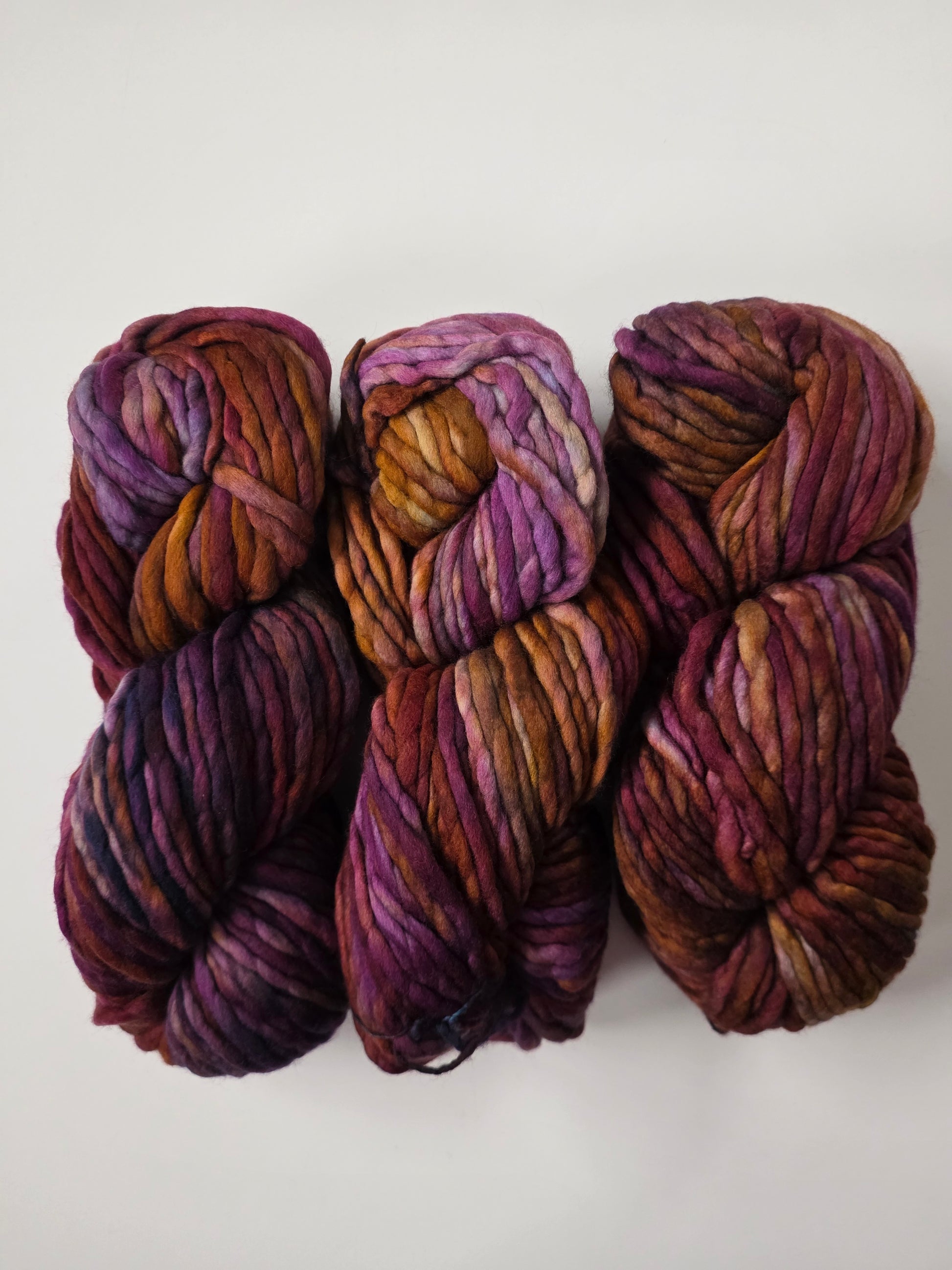 Malabrigo Rasta 100% merino wool. Single ply slightly felted with a twist. Each skein is 90 yards of incredibly cozy hand dyed yarn. Great for quick knits, textured stitches, hats, cowls, scarves, outerwear.