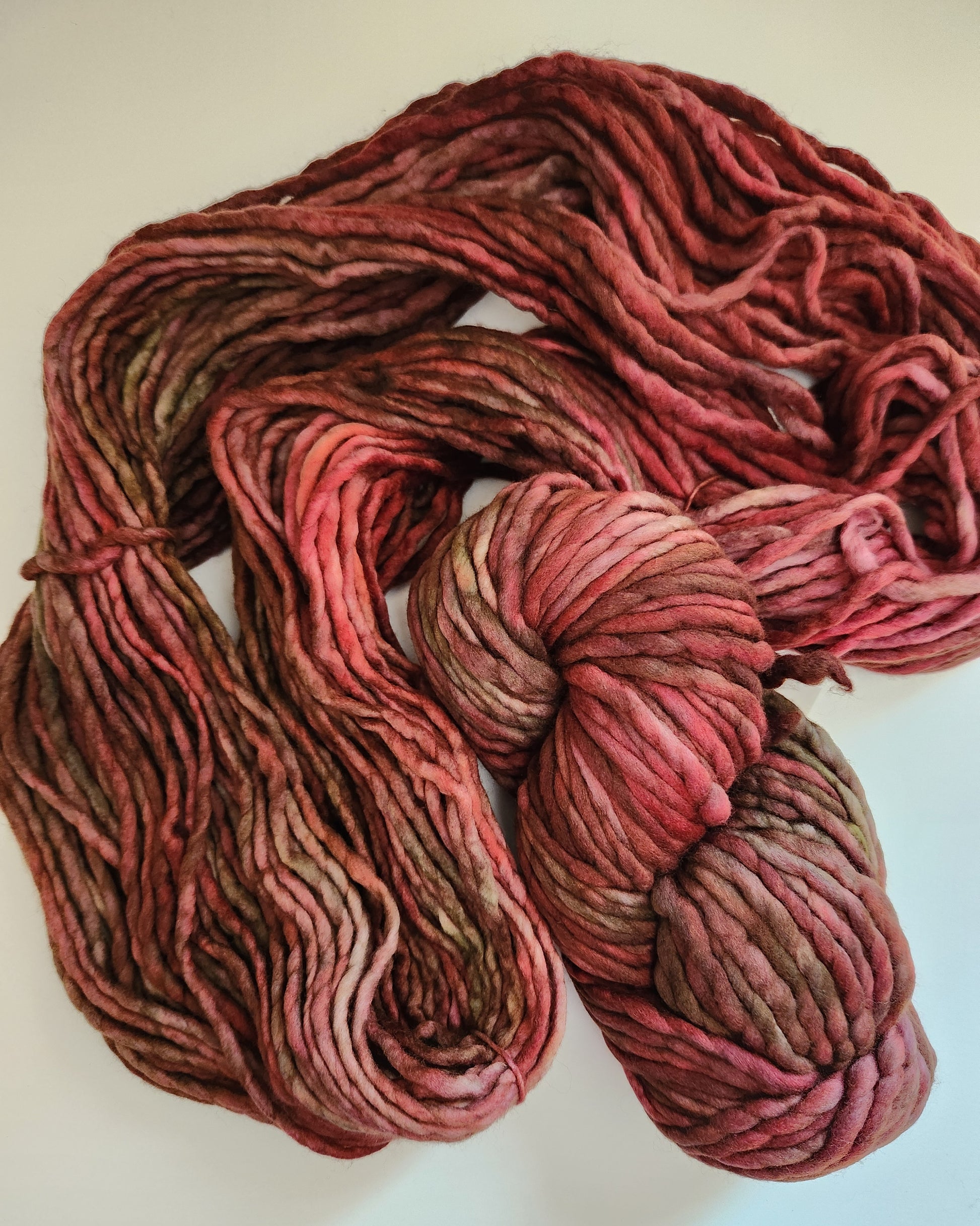 Malabrigo Rasta 100% merino wool. Single ply slightly felted with a twist. Each skein is 90 yards of incredibly cozy hand dyed yarn. Great for quick knits, textured stitches, hats, cowls, scarves, outerwear.