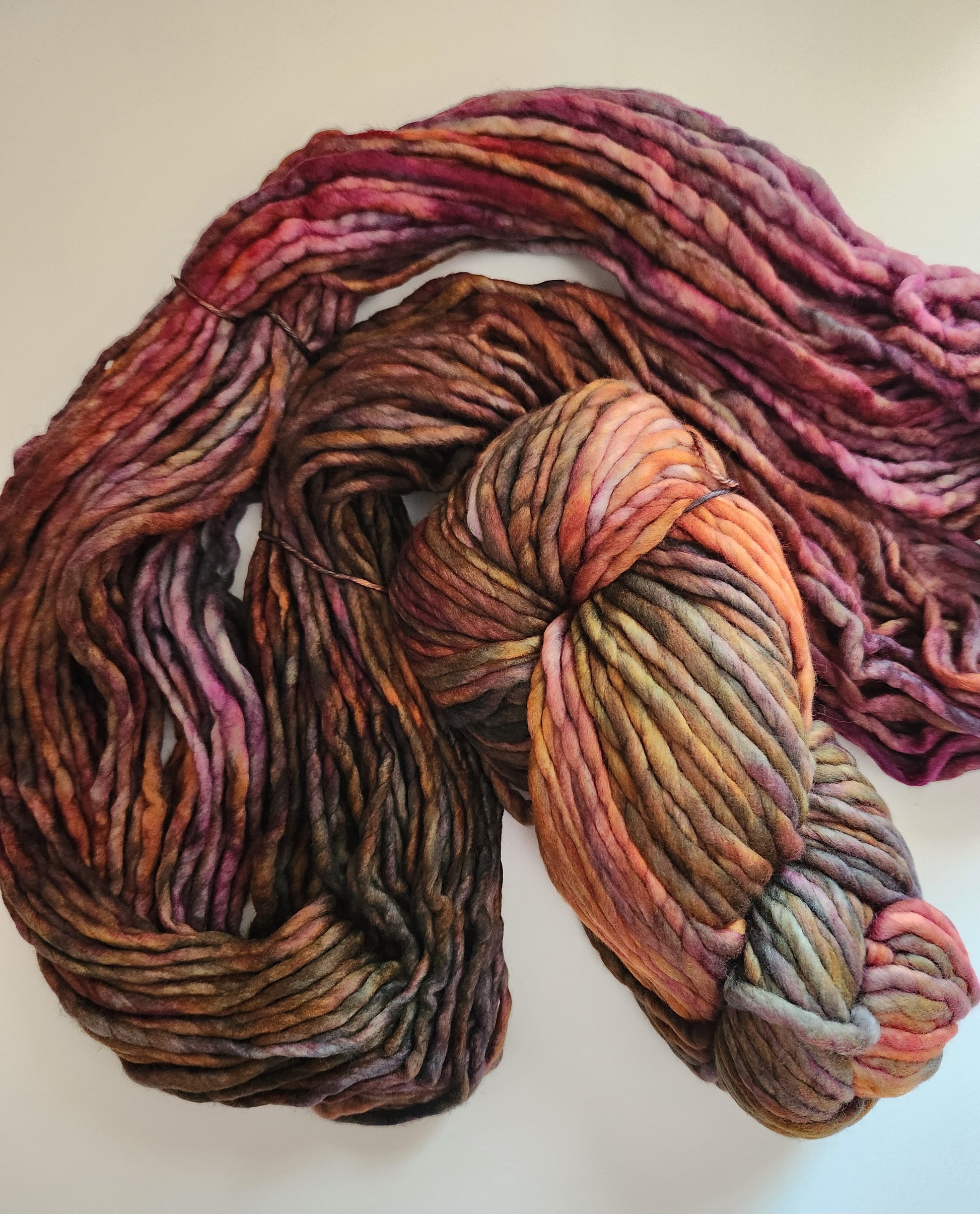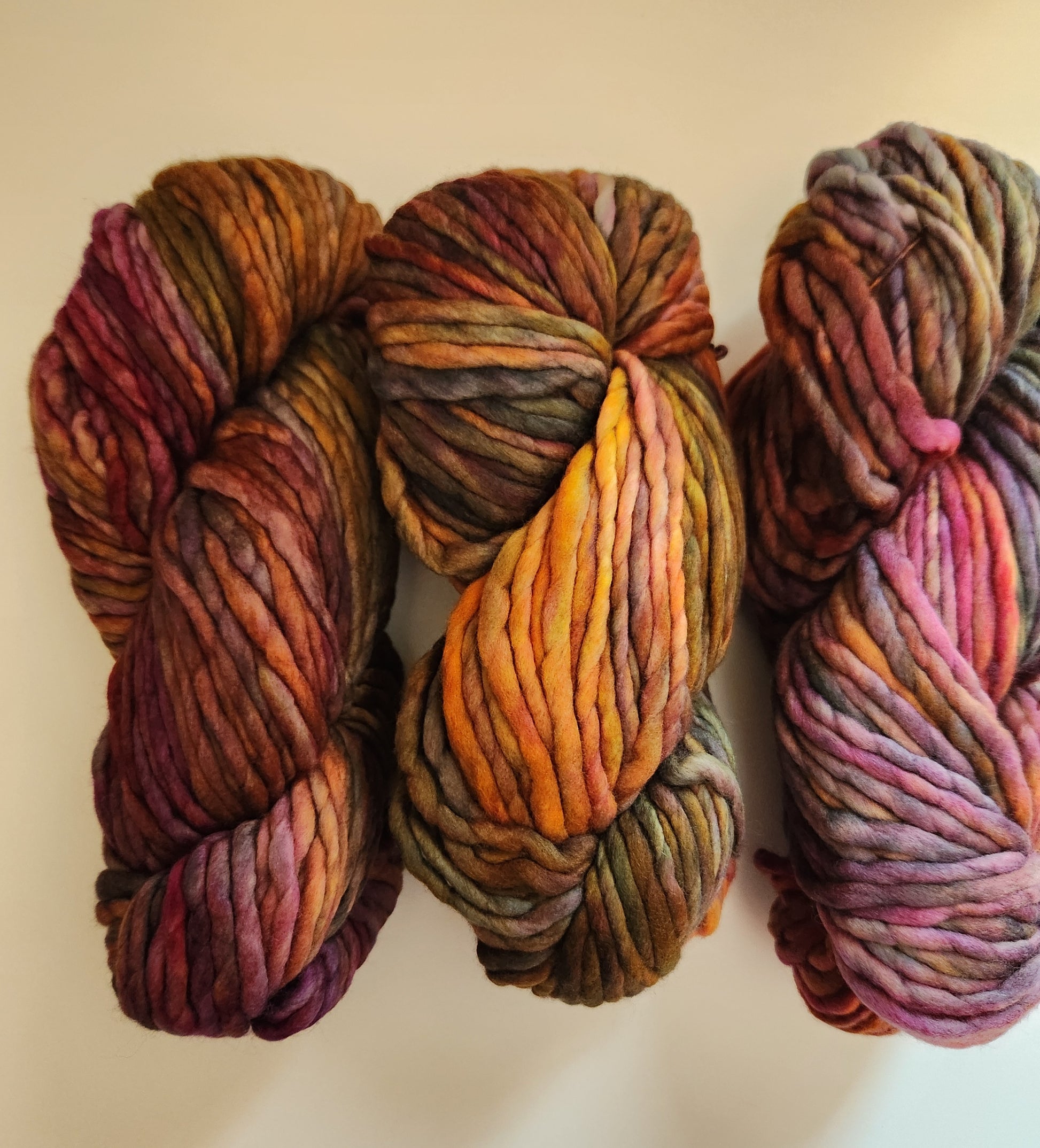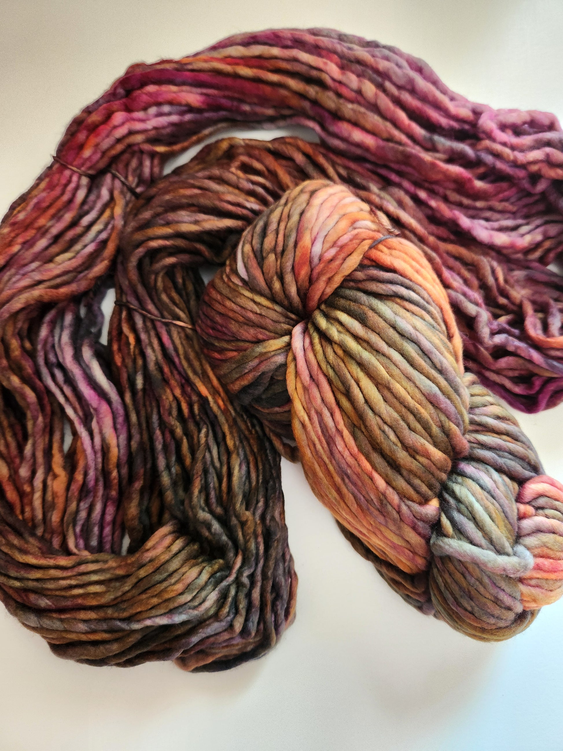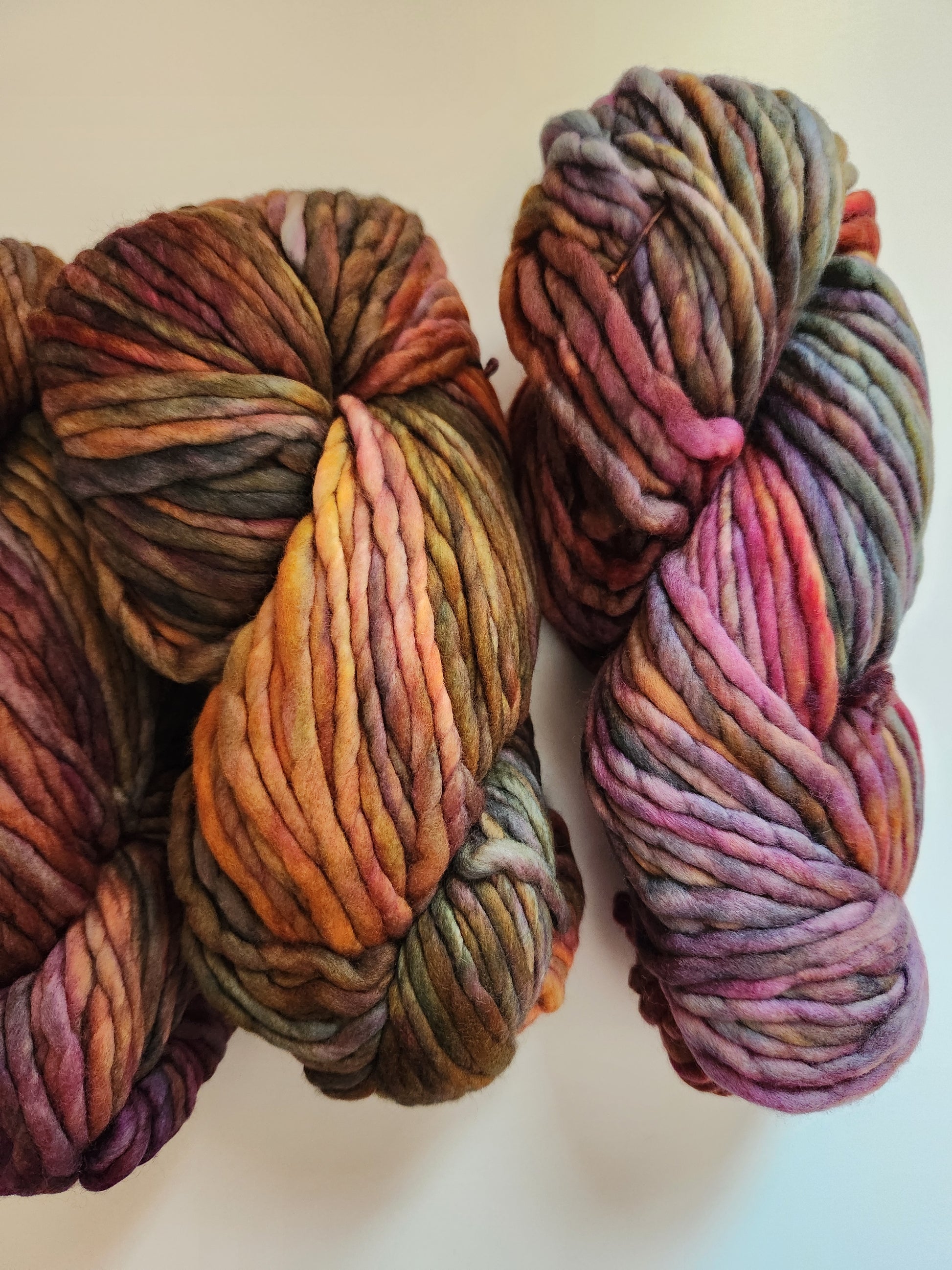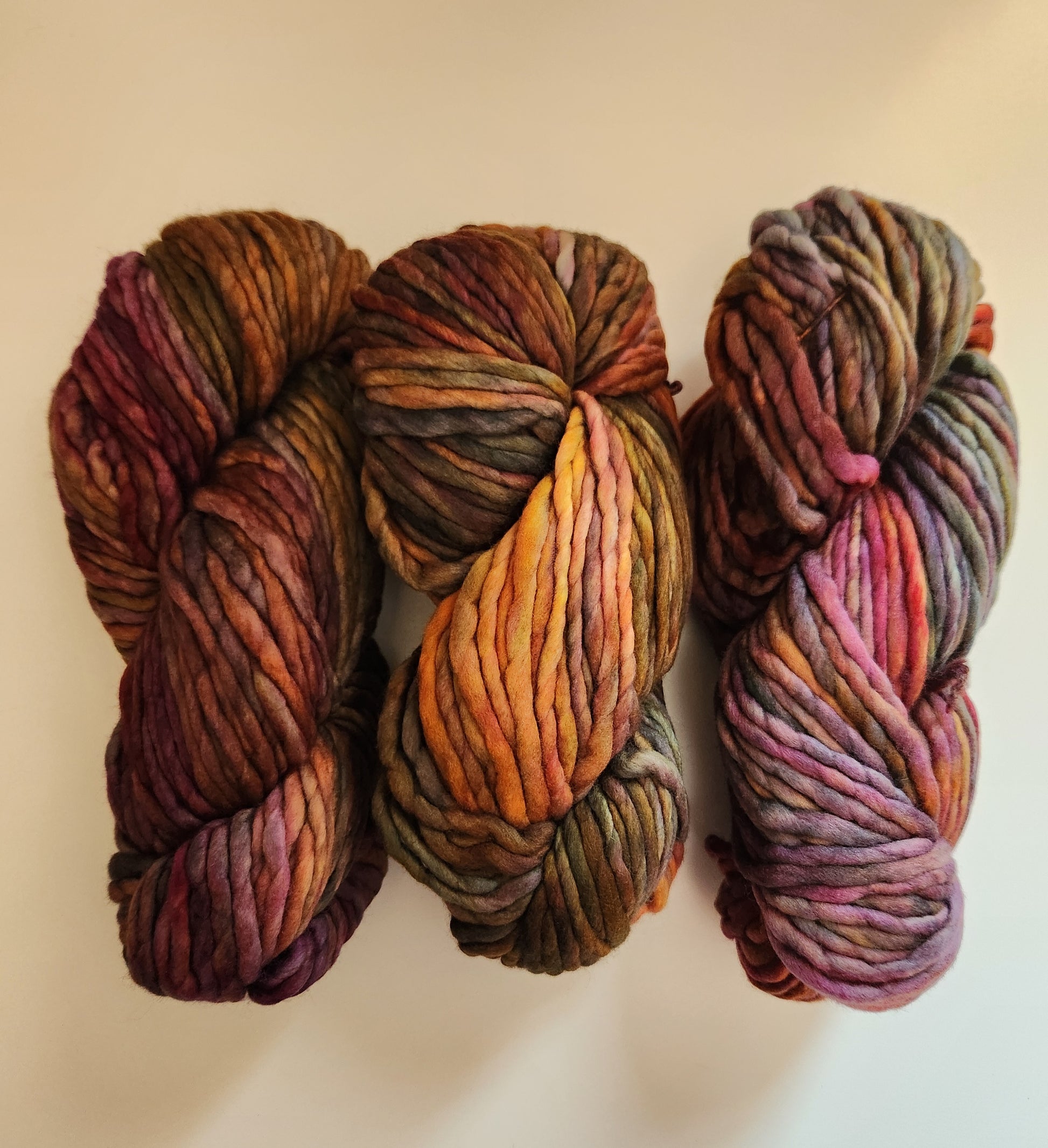 Malabrigo Rasta 100% merino wool. Single ply slightly felted with a twist. Each skein is 90 yards of incredibly cozy hand dyed yarn. Great for quick knits, textured stitches, hats, cowls, scarves, outerwear.