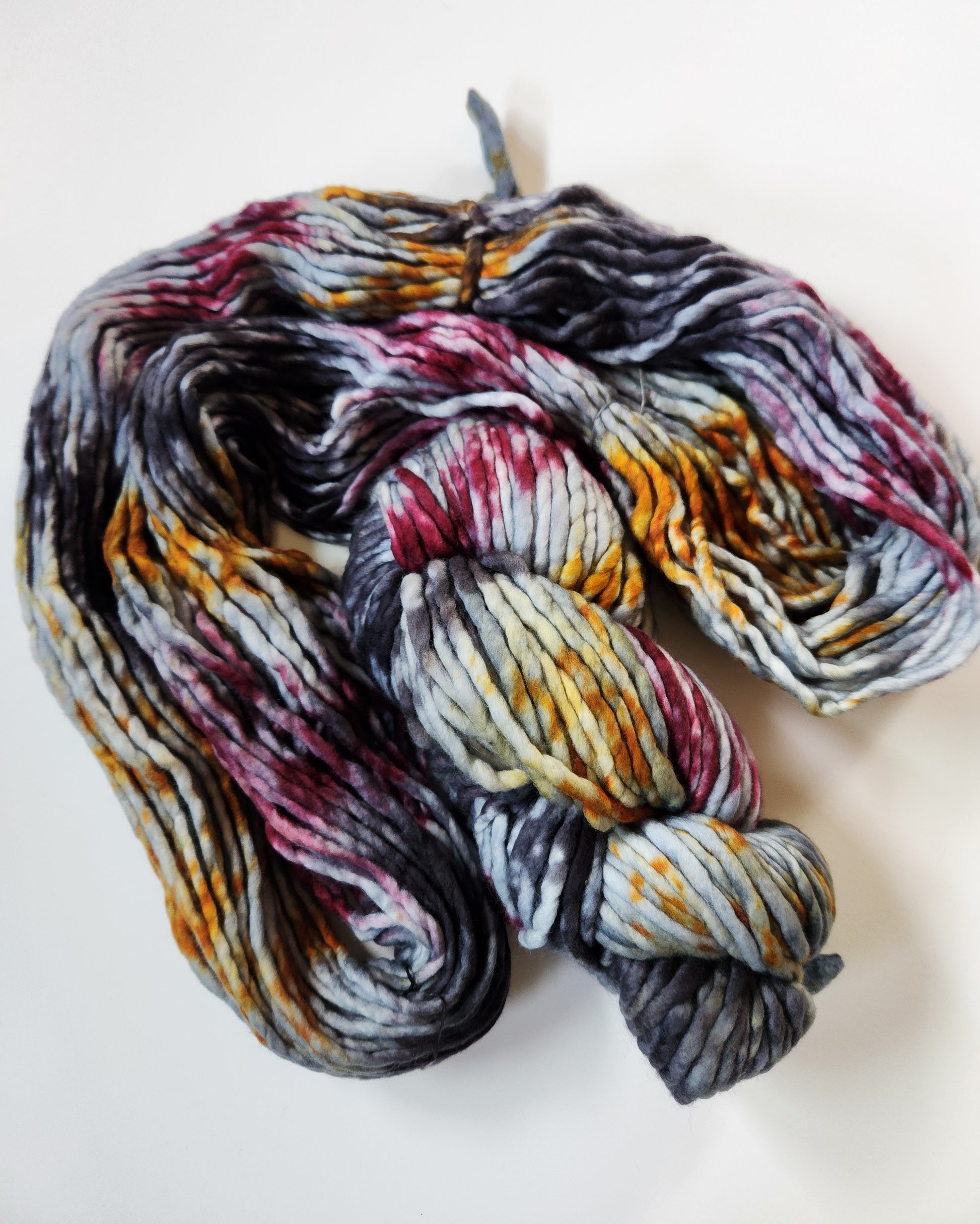 Malabrigo Rasta 100% merino wool. Single ply slightly felted with a twist. Each skein is 90 yards of incredibly cozy hand dyed yarn. Great for quick knits, textured stitches, hats, cowls, scarves, outerwear.