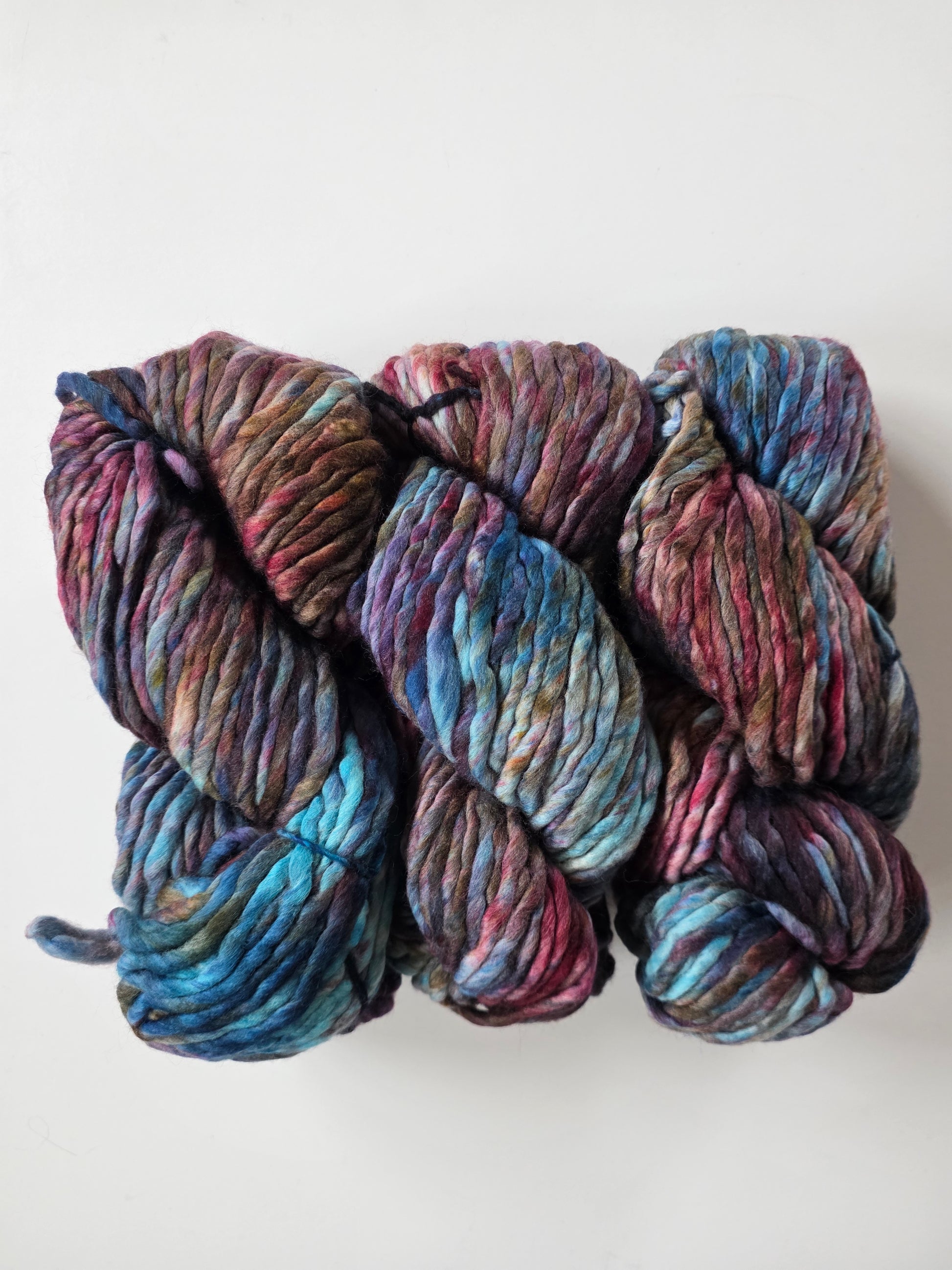 Malabrigo Rasta 100% merino wool. Single ply slightly felted with a twist. Each skein is 90 yards of incredibly cozy hand dyed yarn. Great for quick knits, textured stitches, hats, cowls, scarves, outerwear.