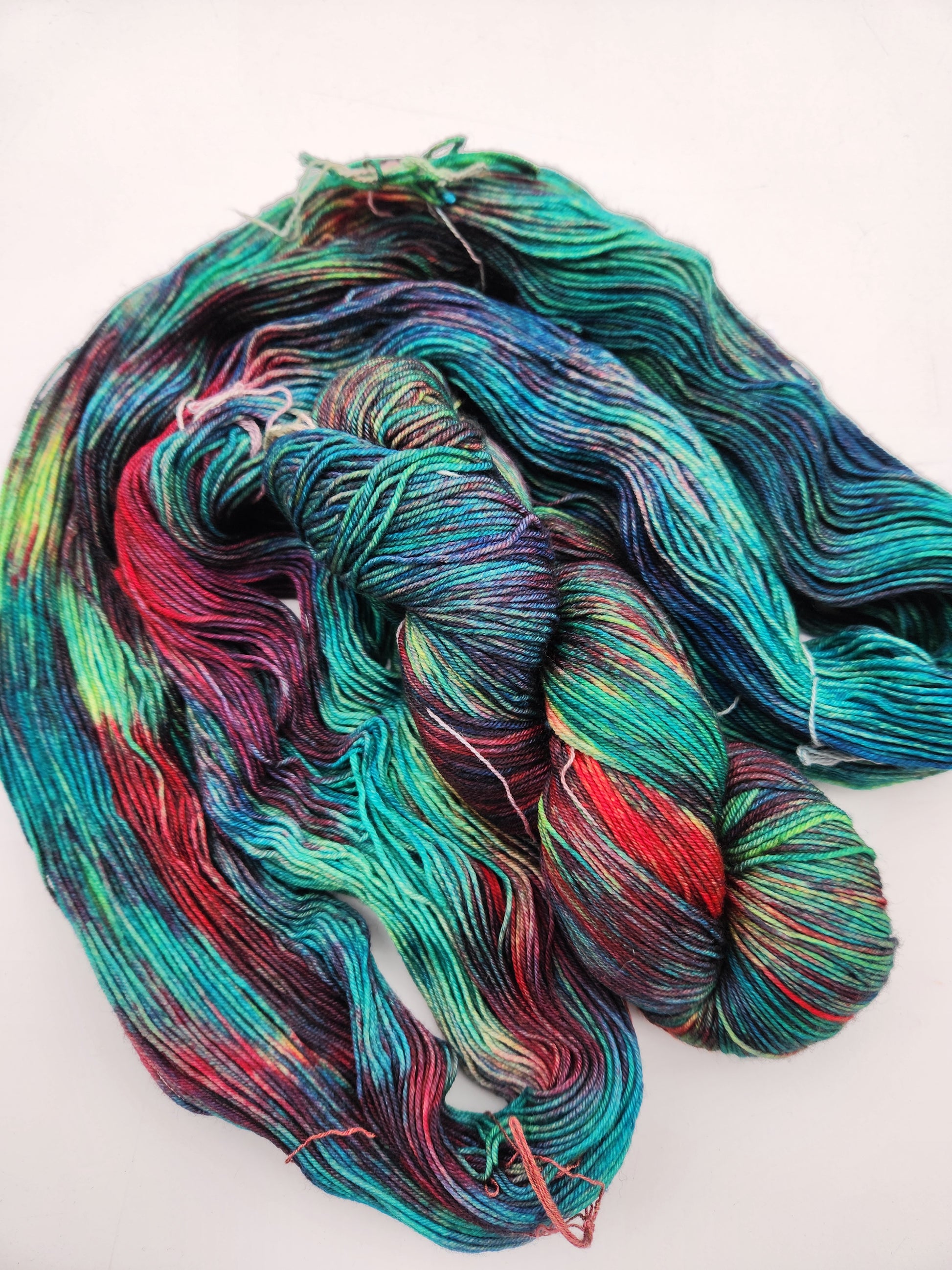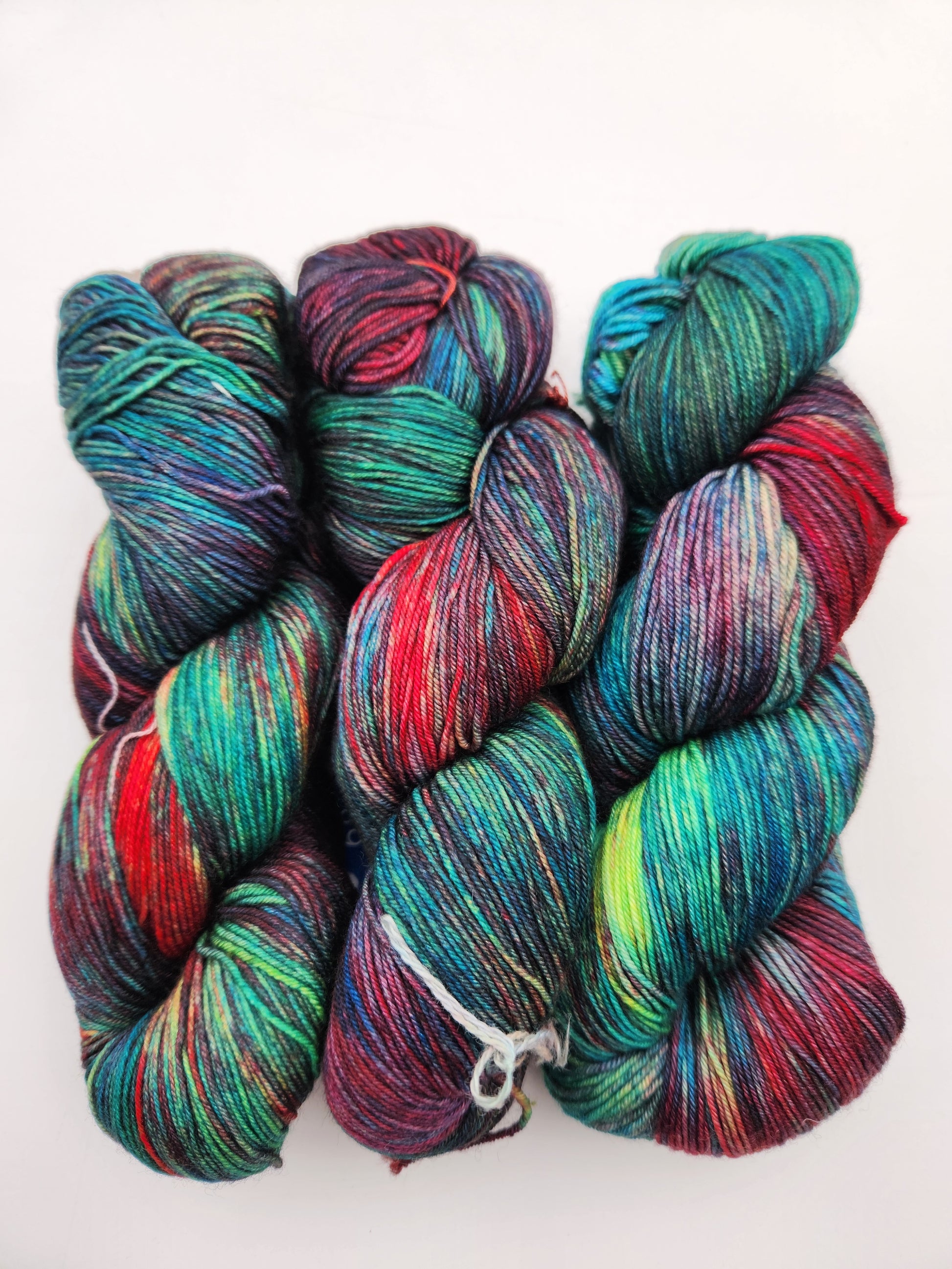 Malabrigo Ultimate Sock (Fingering Weight) 4 ply. Each skein is 420 yards (385 meters).