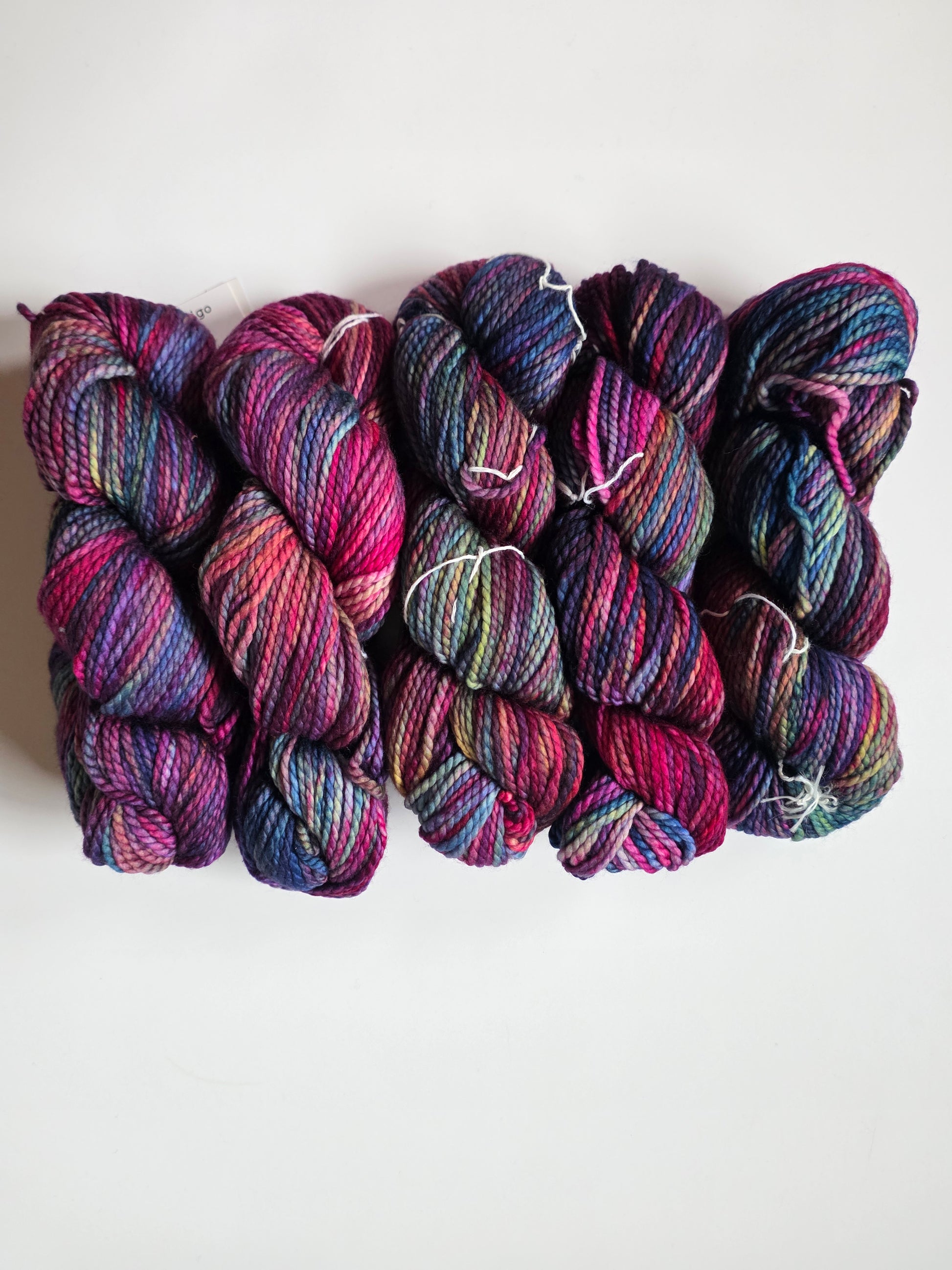Malabrigo Vientos 100% merino wool. Bulky. Each skein is 130 yards of incredibly cozy hand dyed yarn. Great for quick knits, hats, cowls, scarves, outerwear.